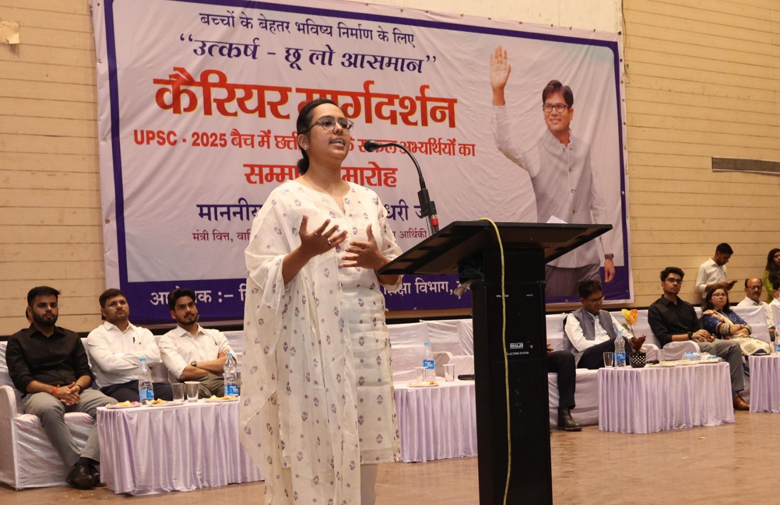 नगर निगम ऑडिटोरियम में आयोजित कैरियर काउंसलिंग कार्यशाला में यूपीएससी वर्ष 2024-25 की परीक्षा में सफलता प्राप्त करने वाले छत्तीसगढ़ राज्य के 6 प्रतिभागी शामिल हुए एवं उन्होंने अपने अनुभवों एवं चुनौतियों को विद्यार्थियों से साझा किए। रायपुर की पूर्वा अग्रवाल ने पालकों को संबोधित करते हुए कहा कि अपनी बेटियों को पढऩे एवं आगे बढ़ाने के लिए प्रेरित करें, महिलाओं के लिए अवसरों की कमी नहीं है। उन्हें विद्यार्थियों से कहा कि लक्ष्य निर्धारित कर तैयारियां करे।