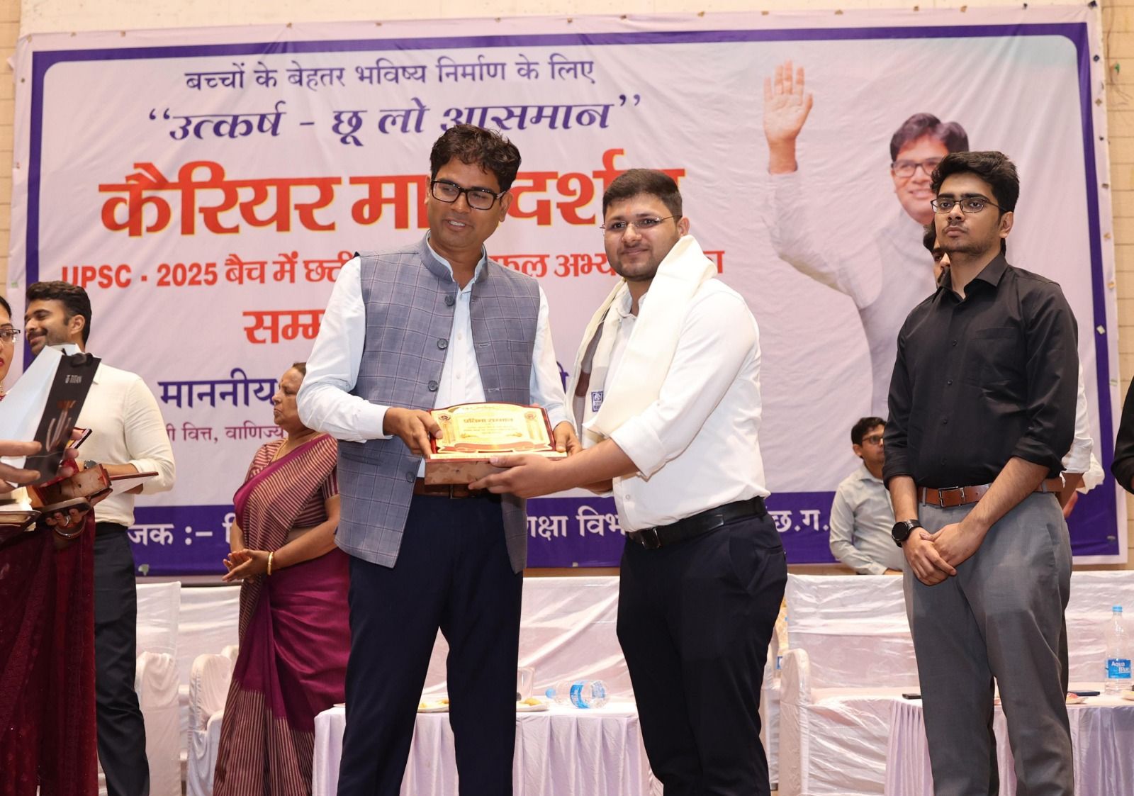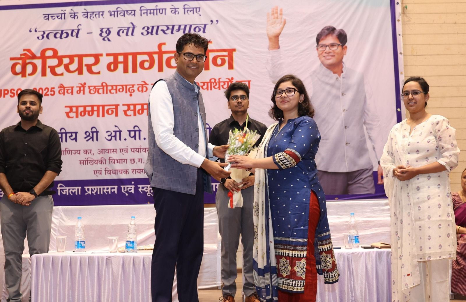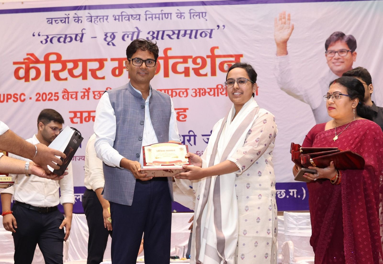 सफल अभ्यर्थियों के अनुभवों से सीख लेकर आप भी ये गुण अपने अंदर विकसित कर सकते हैं। उन्होंने यूपीएससी के परीक्षा के टिप्स देते हुए विद्यार्थियों से कहा कि इस परीक्षा में सफलता के लिए पांच बिंदु अत्यंत महत्वपूर्ण है। सबसे पहले भाषा में मजबूत पकड़ होनी चाहिए, जनरल अवेयरनेस के तहत अपने आस-पास देश दुनिया में क्या घट रहा है इसकी समझ होनी चाहिए, यूपीएससी में सर्वाधिक अंक लिखित परीक्षा से मिलते हैं, इसके लिए आपका लेखन कौशल अच्छा हो और उत्तर लिखने की गति तेज होनी चाहिए। साथ ही बोलने की कला भी चाहिए जिससे आप अपने विचारों को अच्छे से व्यक्त कर सकें। यह आपको इंटरव्यू में आत्मविश्वास देगा। उन्होंने आगे कहा कि यहां यूपीएससी के साथ ही अन्य परीक्षाओं में आपके बेहतर रिजल्ट देने वाले होंगे। उन्होंने कहा कि आप स्वयं पर पर भरोसा रखे और सकारात्मक सोच के साथ आगे बढ़े। उन्होंने विद्यार्थियों को शुभकामनाएं देते हुए कहा कि आप लक्ष्य लेकर चलें कि आपका हस्ताक्षर अगले 10 साल में ऑटोग्राफ बन जाए और आपके पालक आपके नाम से जाने जाएं। वित्त मंत्री एवं रायगढ़ विधायक श्री ओ.पी.चौधरी ने विधानसभा क्षेत्र रायगढ़ के जो भी अभ्यर्थी यूपीएससी अथवा सीजीपीएससी परीक्षा में प्रीलिम्स क्वालीफाई करेंगे, उसे स्वेच्छानुदान से 40 हजार रुपए देने की घोषणा की। मौके पर उन्होंने यूपीएससी वर्ष 2024-25 की परीक्षा में सफलता प्राप्त करने वाले छत्तीसगढ़ राज्य के 6 प्रतिभागियों एवं मेरिट लिस्ट तथा 90 प्रतिशत से अधिक अंक अर्जित करने वाले विद्यार्थियों को जिला प्रशासन रायगढ़ द्वारा सम्मानित किया गया।