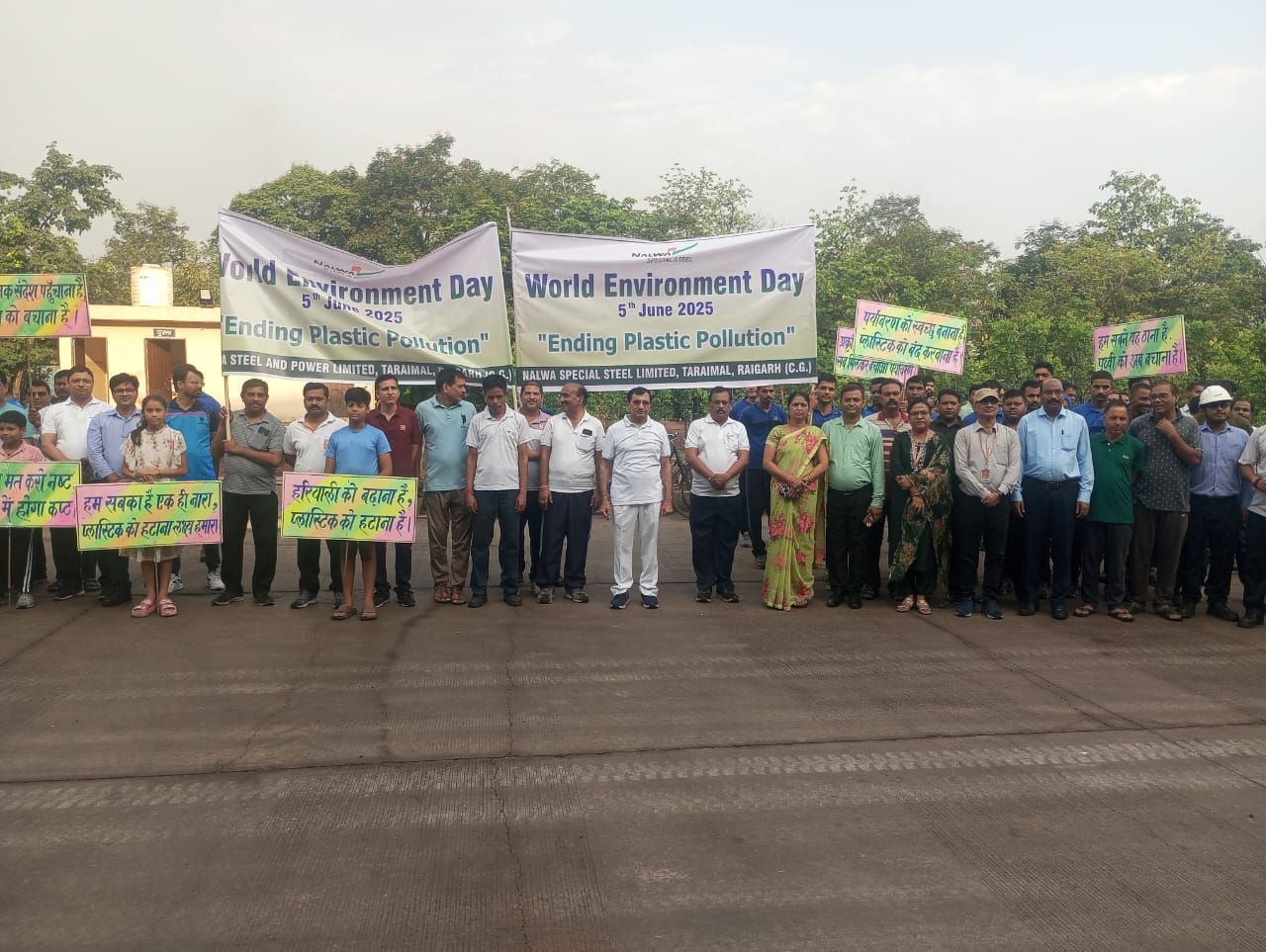 नलवा स्टील एंड पावर लिमिटेड तराइमाल में 5 जून 2025 को विश्व पर्यावरण दिवस समारोह की वृहद रूप से एवं धूमधाम से मनाया गया। 2025 में पर्यावरण दिवस का विषय प्लास्टिक प्रदूषण को समाप्त करना निर्धारित किया गया था। विश्व पर्यावरण दिवस की शुरुआत नलया स्टील एंड पावर लिमिटेड में 30.05.2025 से ही विभिन्न प्रतियोगिताओं, निबंध, चित्रकला, स्लोगन, किज, पर्यावरण ज्ञान प्रतियोगिता इत्यादि के साथ प्रारंभकी गई जिसमें संयंत्र के कर्मचारियों एवं कॉलोनी में निवासरत बच्चों ने बढ़ चढ़कर एवं बड़े ही उत्साह के साथ प्रतियोगिताओं में हिस्सा लिया साथ ही पर्यावरण जागरूकता के लिए एक प्रशिक्षण कार्यक्रम का भी आयोजन किया गया था जिसमें जलवायु, भूमि प्रदूषण एवं प्लास्टिक प्रदुषण को समाप्त करना उनके नियंत्रण के उपाय एवं वृक्षारोपण के फायदे एवं उपयोगिता के बारे में जानकारी दी गई।