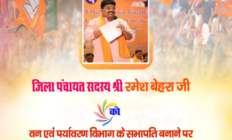 रमेश बेहरा जी का अनुभव, समर्पण और सादगीपूर्ण व्यक्तित्व निश्चित रूप से पर्यावरण संरक्षण और जनहित के कार्यों को नई दिशा प्रदान करेगा। उनकी नियुक्ति को लेकर क्षेत्रवासियों में उत्साह का माहौल है, और यह माना जा रहा है कि उनके नेतृत्व में वन एवं पर्यावरण विभाग नए कीर्तिमान स्थापित करेगा।