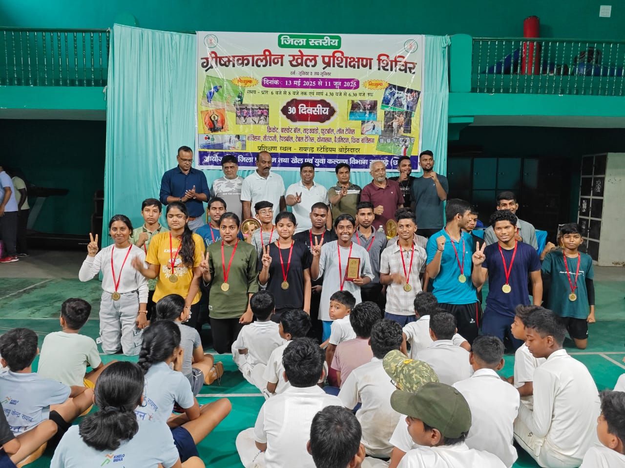 रायगढ़ स्टेडियम बोईरदादर में 30 दिवसीय जिला स्तरीय ग्रीष्मकालीन खेल प्रशिक्षण शिविर का समापन हुआ। 13 मई से 11 जून 2025 तक आयोजित ग्रीष्मकालीन खेल शिविर में कुल 11 विभिन्न खेल विधाओं में लगभग 276 छात्र-छात्राओं की सक्रिय भागीदारी रही। शिविर का उद्देश्य विद्यार्थियों को खेलों की तकनीकी जानकारी प्रदान करना, उनकी प्रतिभा को निखारना तथा खेलों के प्रति जागरूकता बढ़ाना रहा।