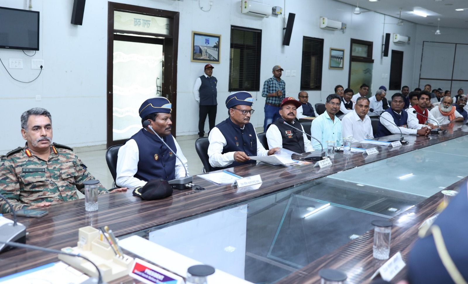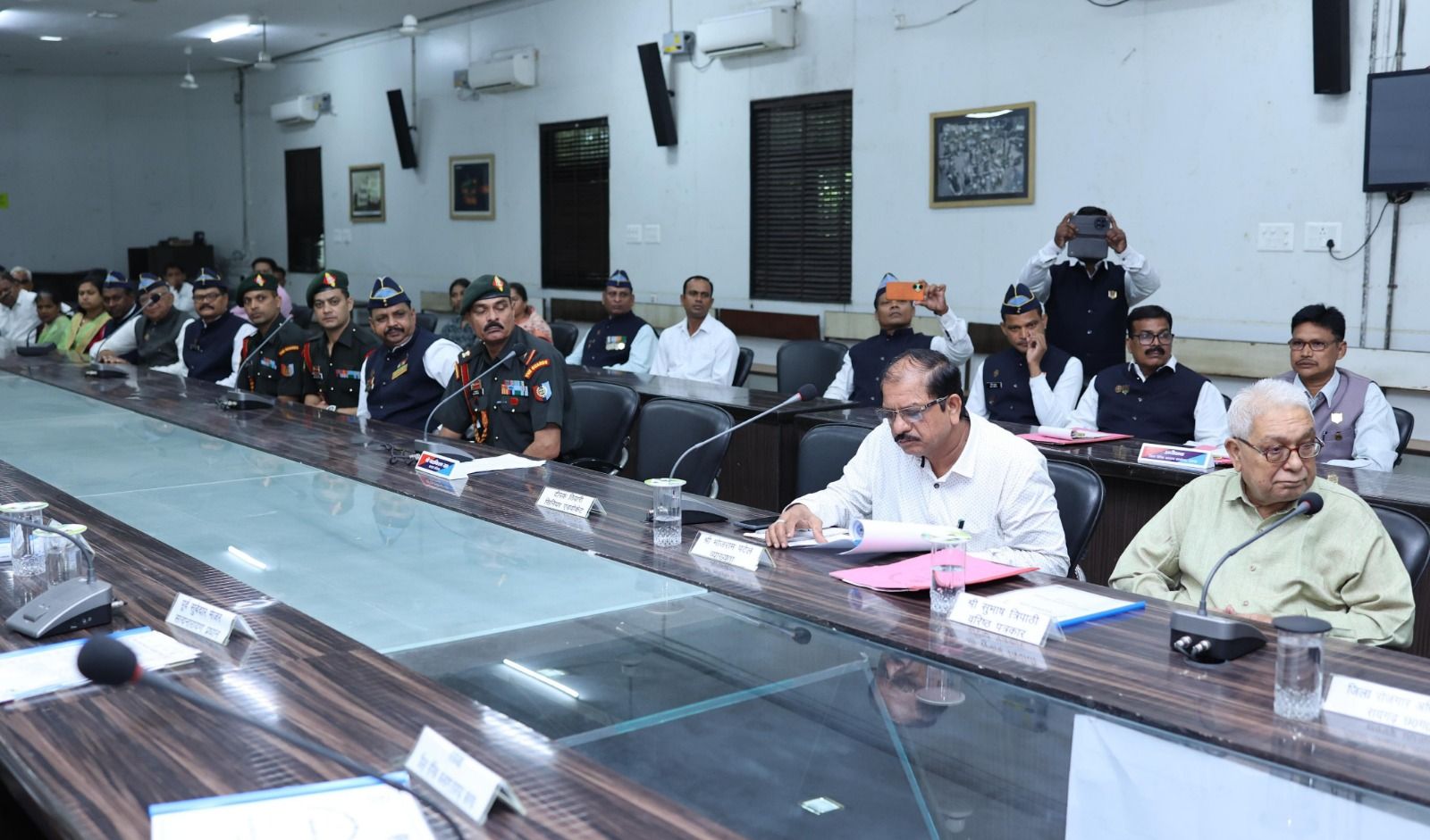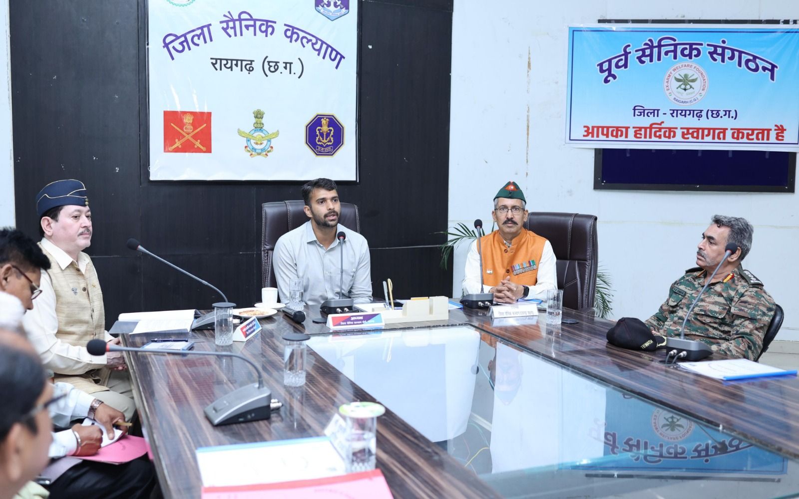 कलेक्टर श्री मयंक चतुर्वेदी की उपस्थिति में आज कलेक्ट्रेट के सृजन सभा कक्ष में जिला सैनिक कल्याण द्वारा रायगढ़ एवं सारंगढ़ जिले के पूर्व सैनिक संगठन की बैठक आयोजित।