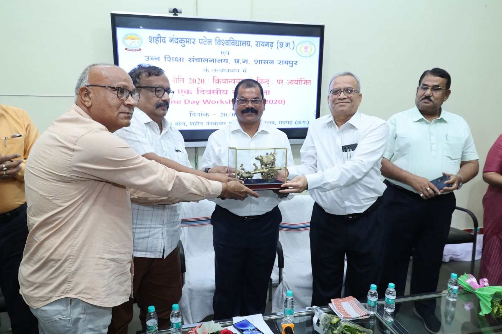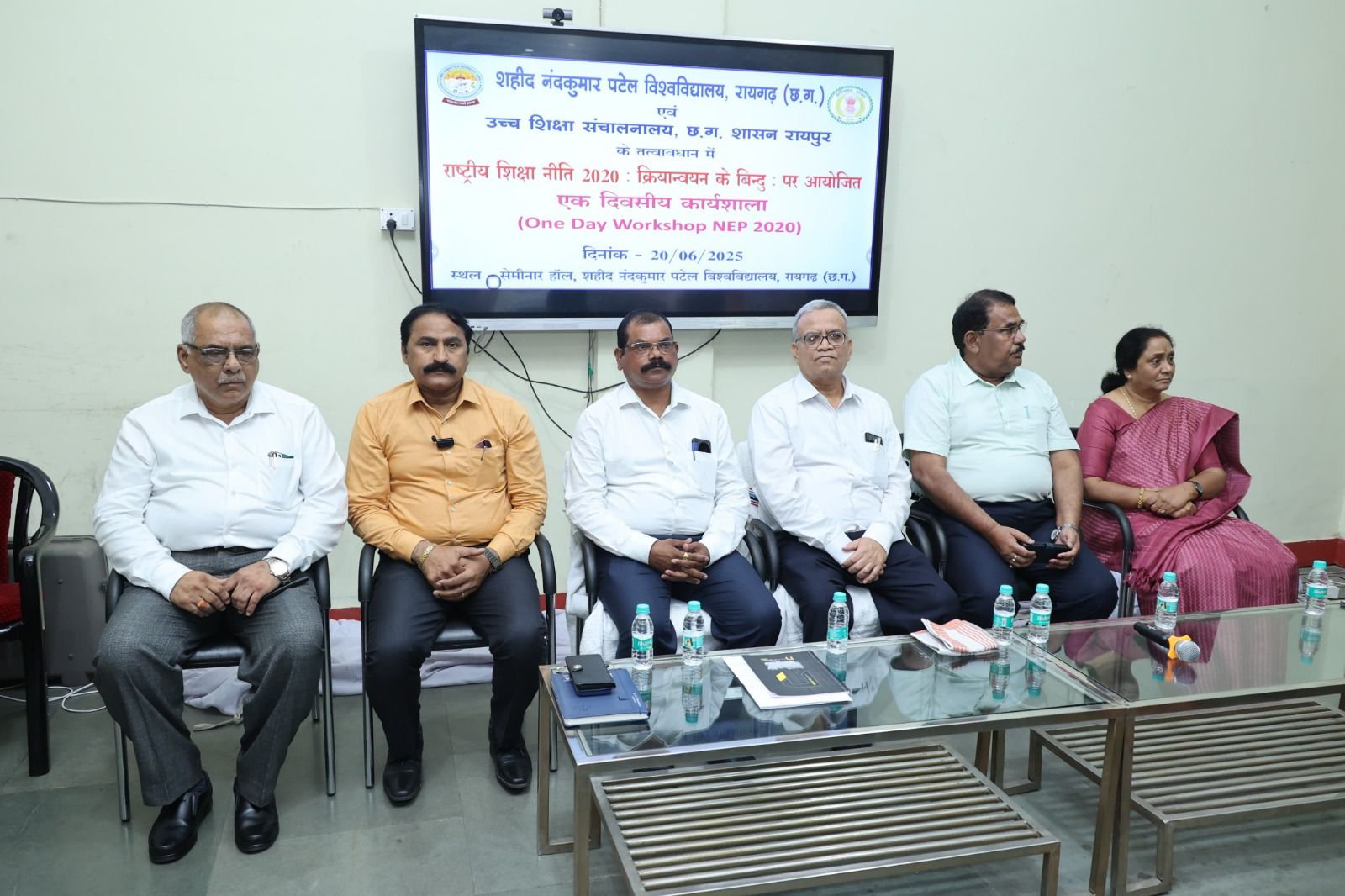 आयुक्त, उच्च शिक्षा, छत्तीसगढ़ शासन डॉ.संतोष देवांगन के मुख्य आतिथ्य में आज शहीद नंदकुमार पटेल विश्वविद्यालय रायगढ़ में राष्ट्रीय शिक्षा नीति 2020:क्रियान्वयन के बिन्दु पर एक दिवसीय कार्यशाला का आयोजन किया गया। इस अवसर पर डॉ.प्रवीण कुमार पाण्डेय संभागीय अपर संचालक उच्च शिक्षा बिलासपुर, डॉ.जी.ए.घनश्याम, संयुक्त संचालक उच्च शिक्षा एवं डॉ.डी.के.श्रीवास्तव, ओ.एस.डी (एनईपी) उच्च शिक्षा छत्तीसगढ़, शहीद नंदकुमार पटेल विश्वविद्यालय रायगढ़ के कुलपति प्रो.डॉ.ललित प्रकाश पटैरिया एवं कुलसचिव डॉ.इन्दु अनंत उपस्थित रहे।