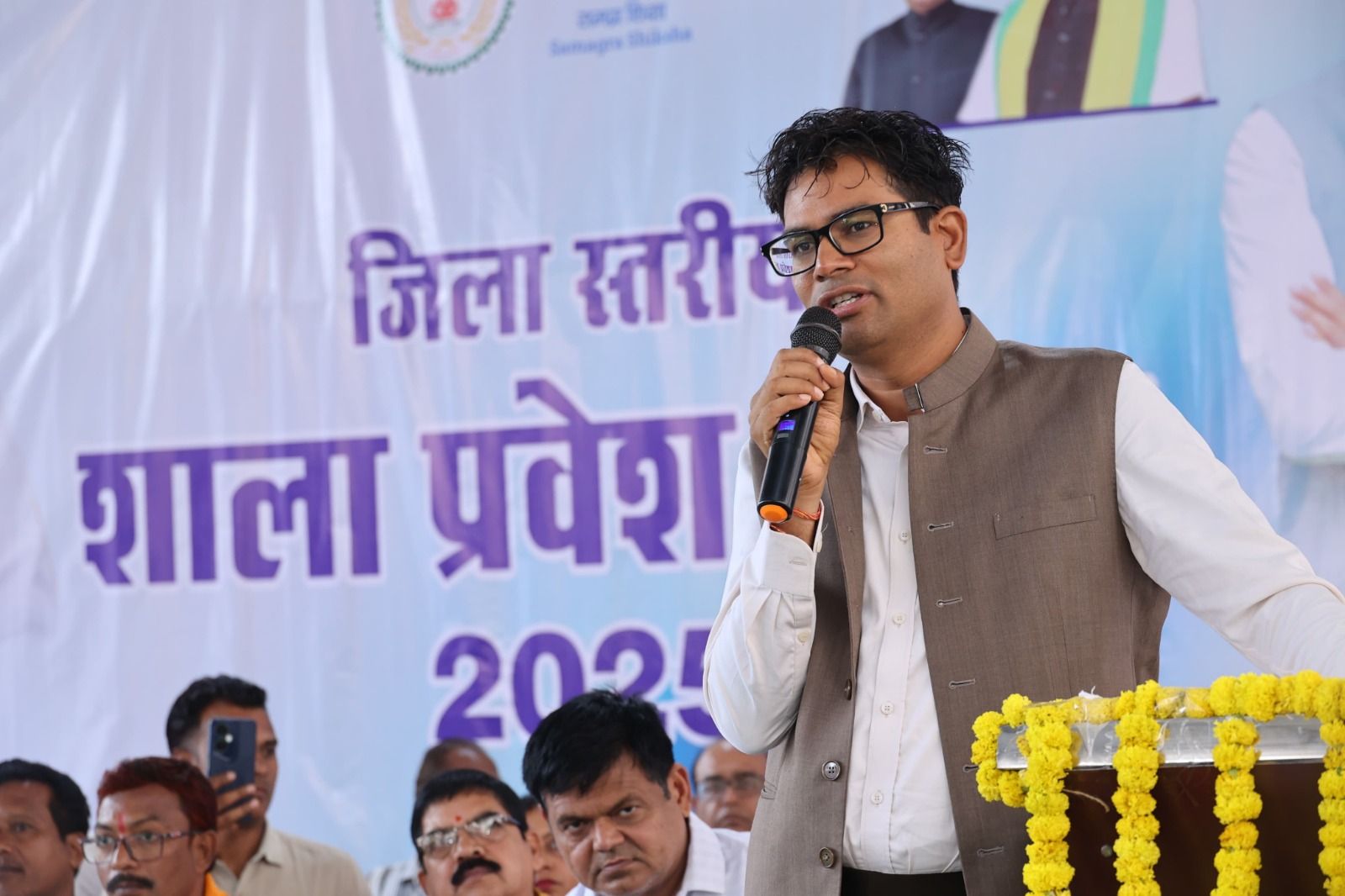 इस अवसर पर लोक सभा सांसद श्री राधेश्याम राठिया ने सभी बच्चों को शाला प्रवेशोत्सव की बधाई देते हुए कहा कि शिक्षा जीवन का सबसे मजबूत आधार है। आप सभी के ध्येय को पूरा करने में शिक्षा की सबसे बड़ी भूमिका होगी। इसलिए स्कूली जीवन में खूब परिश्रम करें और आने वाले समय के लिए खुद को तैयार करें। राज्यसभा सांसद श्री देवेंद्र प्रताप सिंह ने बच्चों को नवीन शिक्षा सत्र की शुभकामनाएं देते हुए कहा कि सिर्फ नंबर के पीछे न भागें। पढ़ाई के साथ खेल पर भी फोकस करें। यह व्यक्तित्व विकास के लिए बेहद जरूरी है। कार्यक्रम को महापौर श्री जीवर्धन चौहान ने भी संबोधित किया। उन्होंने सभी छात्रों को शुभकामनाएं देते हुए नटवर स्कूल के अपने छात्र जीवन को याद किया। मौके पर वित्त मंत्री श्री ओ.पी.चौधरी, सांसद श्री राधेश्याम राठिया एवं राज्यसभा सांसद श्री देवेंद्र प्रताप सिंह ने नव प्रवेशी बच्चों को किताबें और गणवेश भी वितरित किए।