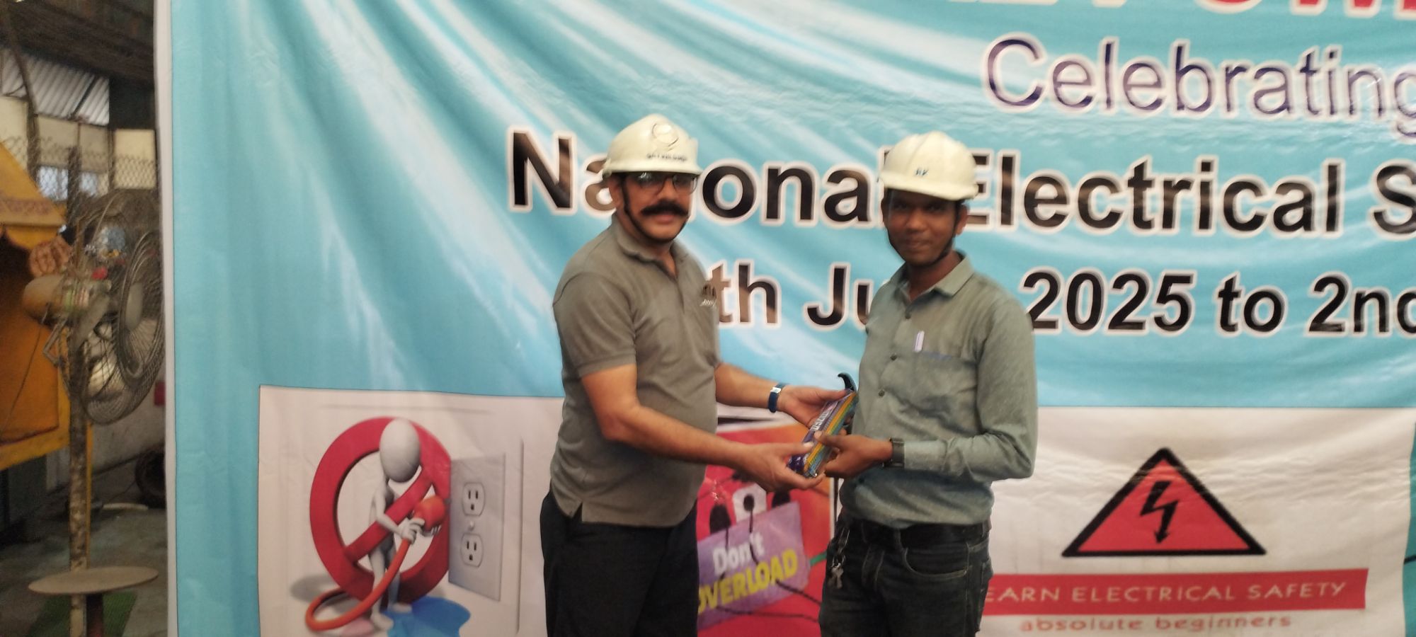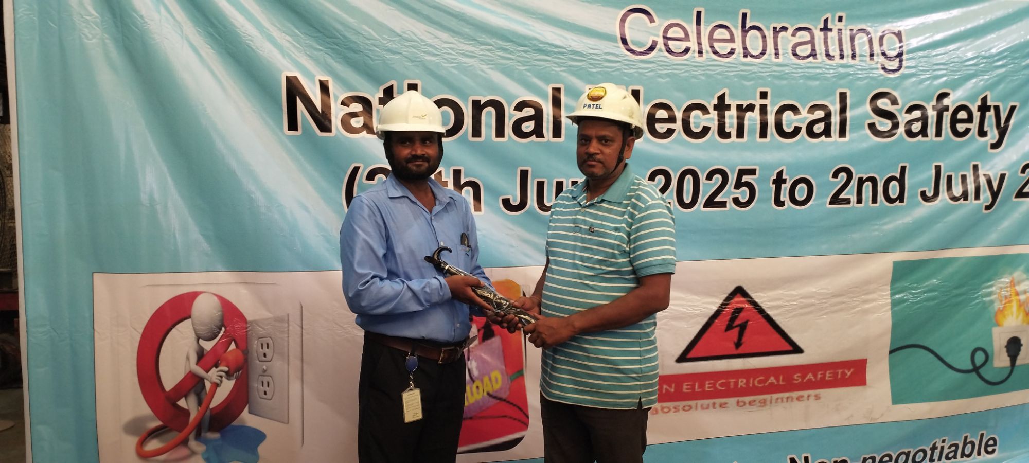 जेपीएल तमनार में इलेक्ट्रिकल विभाग द्वारा विद्युत सुरक्षा सप्ताह अंतर्गत विद्युत सुरक्षा सप्ताह में इस वर्ष का थीम “सुरक्षित ऊर्जा, सुरक्षित राष्ट्र” और “विद्युत सुरक्षा, गैर-समझौता” के तहत विद्युत सुरक्षा संबंधी क्विज प्रतियोगिता,सामान्य सावधानियों के बारे में जेपीएल के अधिकारी कर्मचारियों व ठेका कर्मचारियों को जागरूक करते शून्य दुर्घटना लक्ष्य पाने विभिन्न प्रतियोगिता की जा रही है।