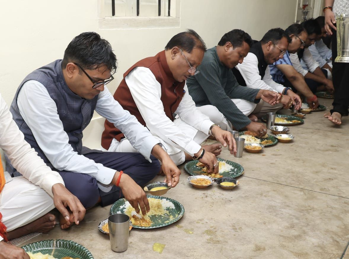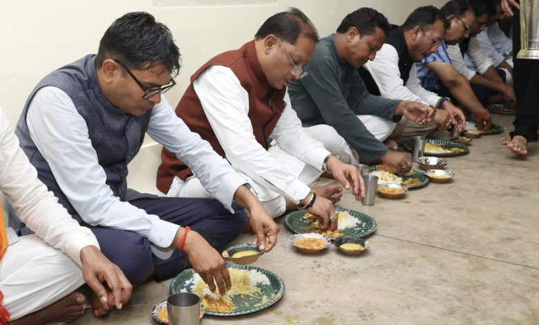 मुख्यमंत्री श्री विष्णु देव साय ने पंगत में बैठकर भंडारा प्रसाद ग्रहण किया