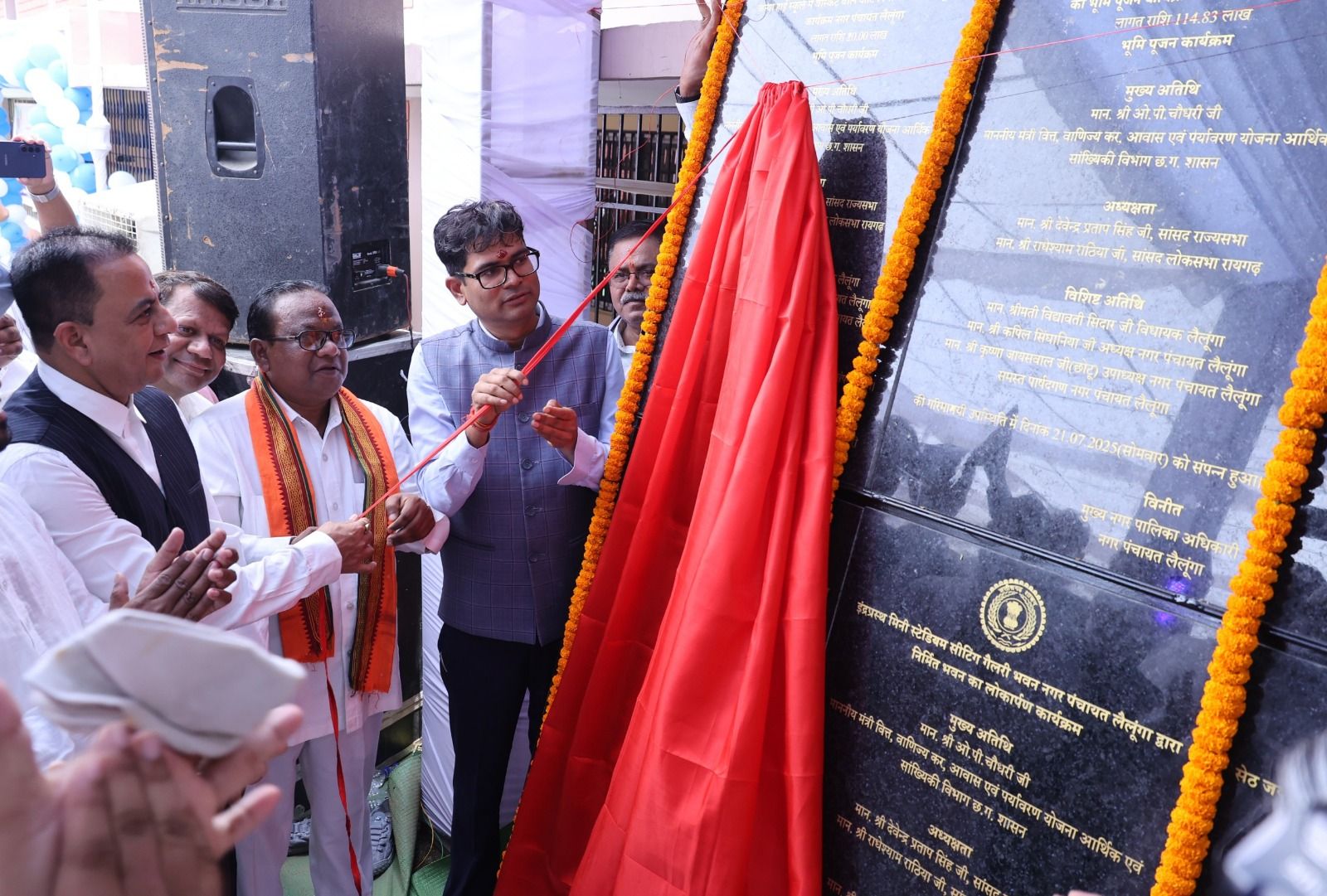 वित्त मंत्री श्री ओ.पी.चौधरी ने आज रायगढ़ जिले के नगर पंचायत लैलूंगा में 2 करोड़ 72 लाख रुपये से अधिक लागत के विभिन्न विकास कार्यों का लोकार्पण और भूमिपूजन किया। इस दौरान उन्होंने जयदयाल सिंघानिया फाउंडेशन के सहयोग से नवनिर्मित सेठ जयदयाल कन्या प्राथमिक शाला भवन का लोकार्पण किया, साथ ही स्कूल परिसर में सेठ जयदयाल सिंघानिया की प्रतिमा का अनावरण भी किया। कार्यक्रम का विधिवत शुभारंभ करते हुए वित्त मंत्री श्री चौधरी ने स्कूल के छात्रों को ड्रेस, पाठ्य सामग्री व श्रीफल का वितरण किया। कार्यक्रम में वित्त मंत्री श्री चौधरी ने लैलूंगा में पंजीयन कार्यालय खोलने की महत्वपूर्ण घोषणा की। जिससे यहां के लोगों को जमीन रजिस्ट्री के लिए दूर जाने की जरूरत नही पड़ेगी और स्थानीय स्तर पर ही काम होने से समय व ऊर्जा की बचत होगी।