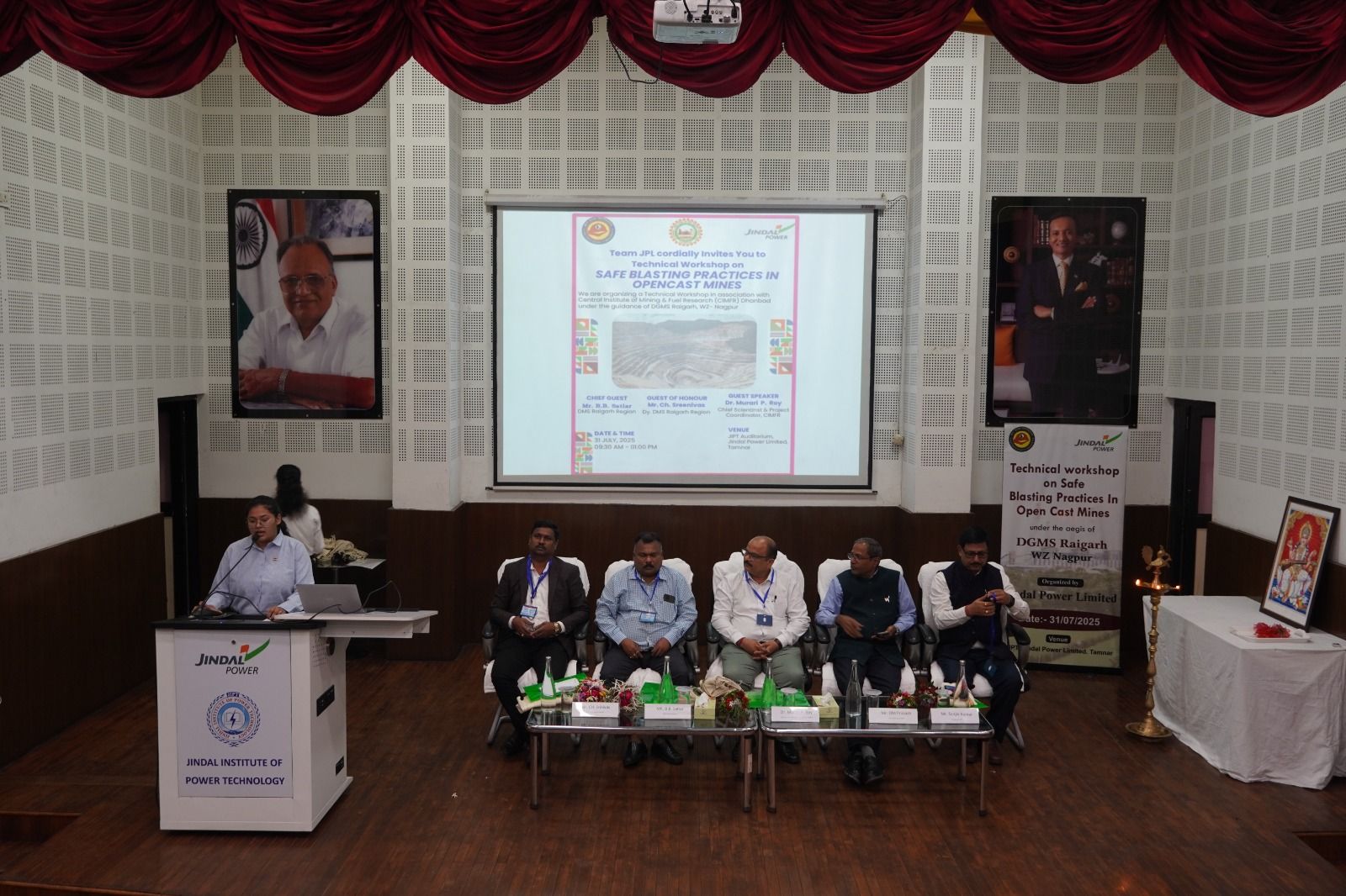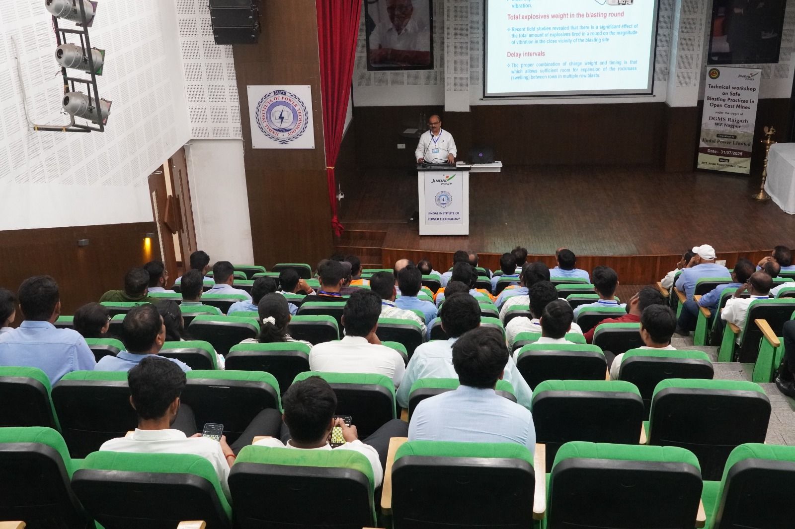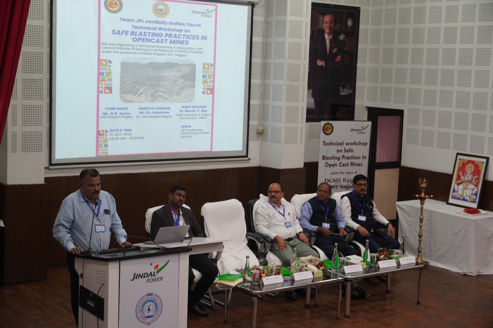 कार्यक्रम का संचालन जिंदल पावर लिमिटेड की असिस्टेन्ट मैनेजर अन्वेशा सिंह द्वारा किया गया जिसमें श्री ओम प्रकाश अध्यक्ष व सीईओ माइनिंग बिजनेस जेपीएल ने सभी गणमान्य व्यक्तियों और अतिधियों का स्वागत किया और ओपनकास्ट ब्लास्टिंग से संबंधित मुद्दों पर प्रकाश डाला। उद्घाटन सत्र रायगढ़ क्षेत्र के उप निदेशक श्री चिर्रा श्रीनिवास जी ने किया जिनके गहन ज्ञान और व्यावहारिक अनुभव ने सभी प्रतिभागियों को विशेष रूप से सुरक्षा, वैधानिक अनुपालन और ब्लास्टिंग कार्यों में सर्वोत्तम प्रथाओं के महत्वपूर्ण पहलुओं पर प्रकाश डाला। तकनीकी व्याख्यान श्री बी.बी. सटिपार उप महानिदेशक (डीजीएमएस) रायगढ़ क्षेत्र ने दिया जिन्होंने अपने बहुमूल्य विचार साझा किया जिससे कार्यशाला में अत्यधिक मूल्य जुट गया और वास्तव में सभी प्रतिभागियों को प्रेरणा मिली। तकनीकी सत्र का प्रदर्शन श्री मुरारी प्रसाद रॉय जी की प्रमुख वैज्ञानिक एवं परियोजना समन्वयक (सीआइएमएफआर) ने किया जिन्होंने मुख्य वक्ता के रूप में कार्यशाला को जीवंत उदाहरणों के साथ प्रस्तुत किया और उनके सत्र न केवल जानकारीपूर्ण थे बल्कि विचारोत्तेजक भी थे. जिनमें आधुनिक ब्लास्टिंग तकनीक की चुनौतियों और समाधानो पर प्रकाश डाला गया। हम उनकी उपस्थिति और व्यावहारिक योगदान के लिए तहे दिल से देते हैं तथा दिल से आभारी है।