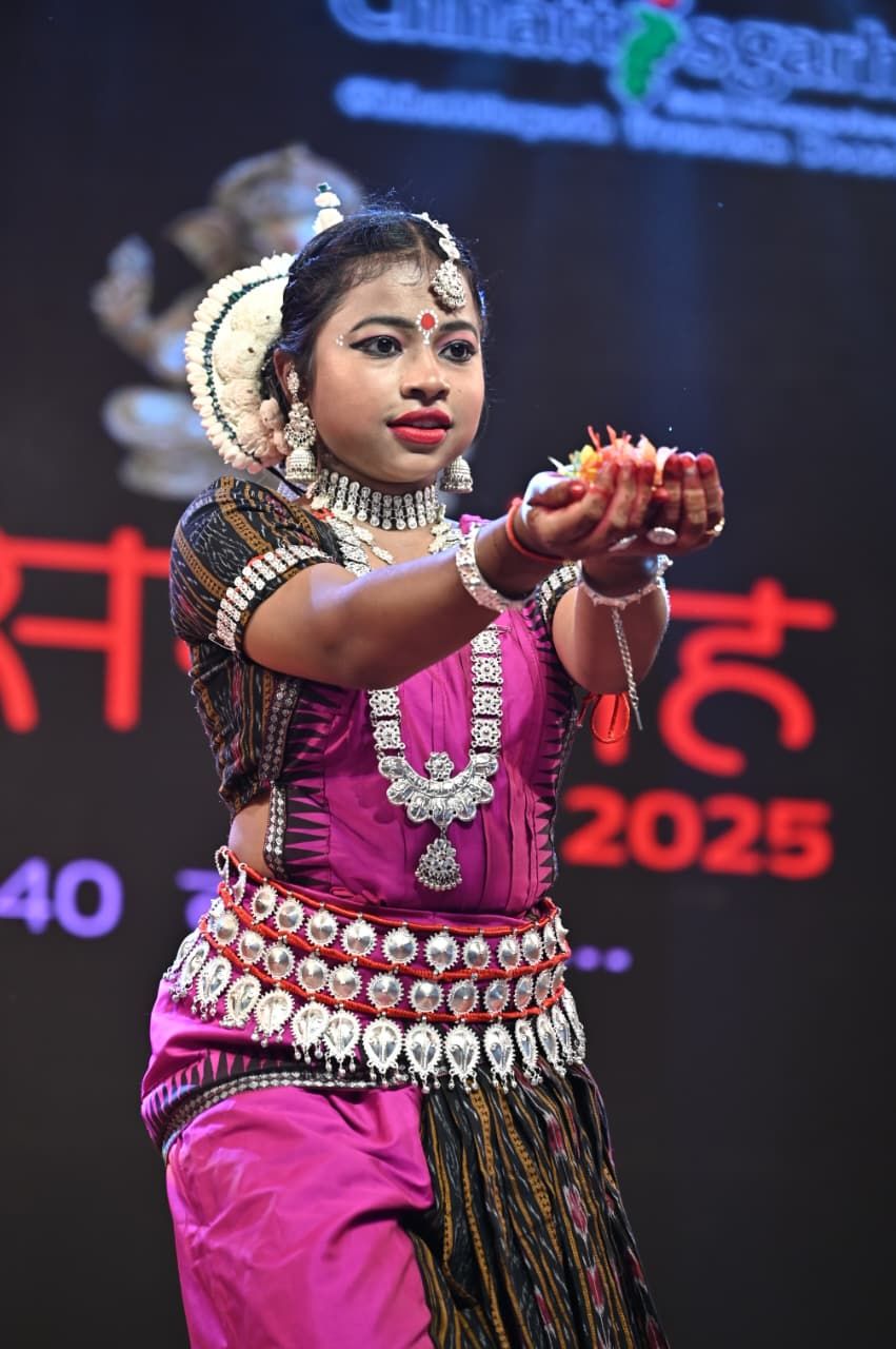 ओडिशी नृत्य की उत्पत्ति उड़ीसा के मंदिरों से हुई है और यह नृत्य अपनी लयबद्ध गतियां, जटिल पद चालन तथा मंदिरों में उकेरी हुई मूर्तियों की मुद्राओं के लिए जाना जाता है। शिवली अपनी कोमल मुद्राओं भावपूर्ण अभिनय तथा तालबद्ध निपुणता के माध्यम से भारतीय महाकाव्यों की कालजयी कथाओं को जीवंत कर देती है। शिवली अपनी नृत्य प्रस्तुति को एक आध्यात्मिक अर्पण के रूप में लेती है जो हमारे पुरातन परंपरा को वर्तमान से जोड़ती है। रायपुर से आई प्रसिद्ध नर्तक,कलाकार सुश्री शिवली देवता द्वारा अपनी प्रस्तुति में पुरी के जगन्नाथ स्वामी पर आधारित मनमोहक प्रस्तुति दी गई। उन्होंने अपनी कलाओं के माध्यम से भावभंगिमाओं के साथ लयबद्ध तरीके से मनमोहक नृत्य प्रस्तुत किए। सुश्री शिवली को विभिन्न प्रतिष्ठित मंचों पर उनकी प्रस्तुति के लिए सम्मानित किया गया है।