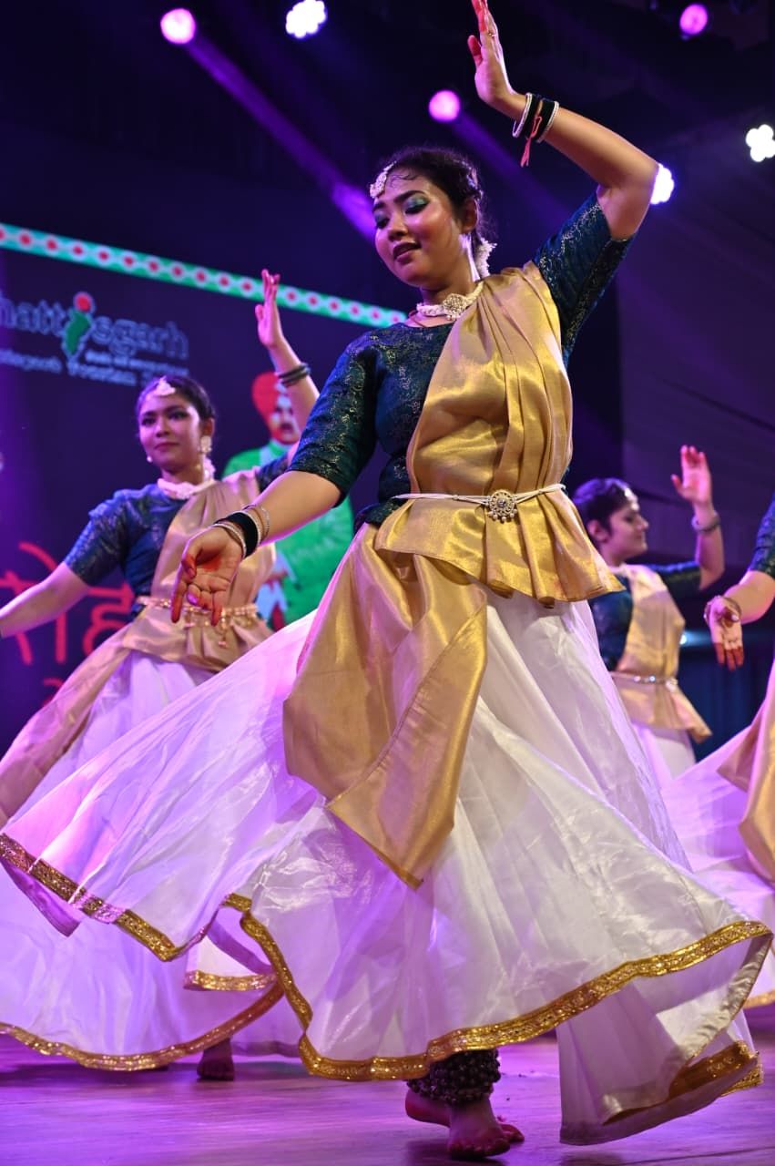 /अंतरराष्ट्रीय ख्याति प्राप्त चक्रधर समारोह 2025 के मंच पर रायगढ़ घराने के सुप्रसिद्ध कथक नर्तक एवं गुरु पं. भूपेन्द्र बरेठ ने अपनी अद्वितीय प्रस्तुति से इस गौरवशाली परंपरा को नई ऊँचाई प्रदान की। उन्होंने श्रीराम स्तुति और महाराजा चक्रधर सिंह से जुड़ी पारंपरिक बंदिशों की मनमोहक प्रस्तुतियों से दर्शकों को मंत्रमुग्ध कर दिया। उनकी भावपूर्ण नृत्य साधना ने न केवल दर्शकों को भावविभोर किया बल्कि पूरा वातावरण कला और संस्कृति से सराबोर हो उठा। दर्शक दीर्घा तालियों की गड़गड़ाहट से देर तक गूंजती रही।