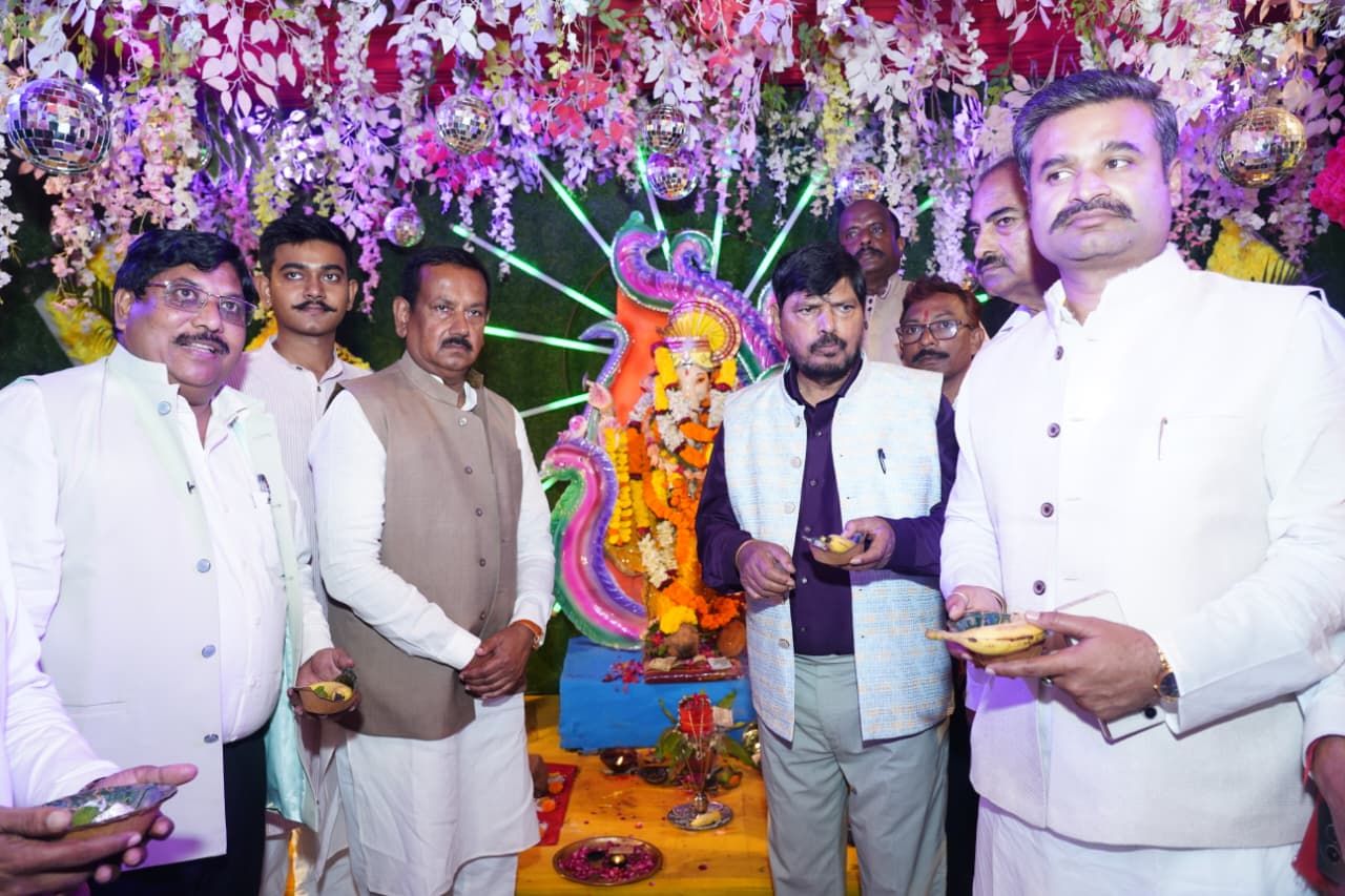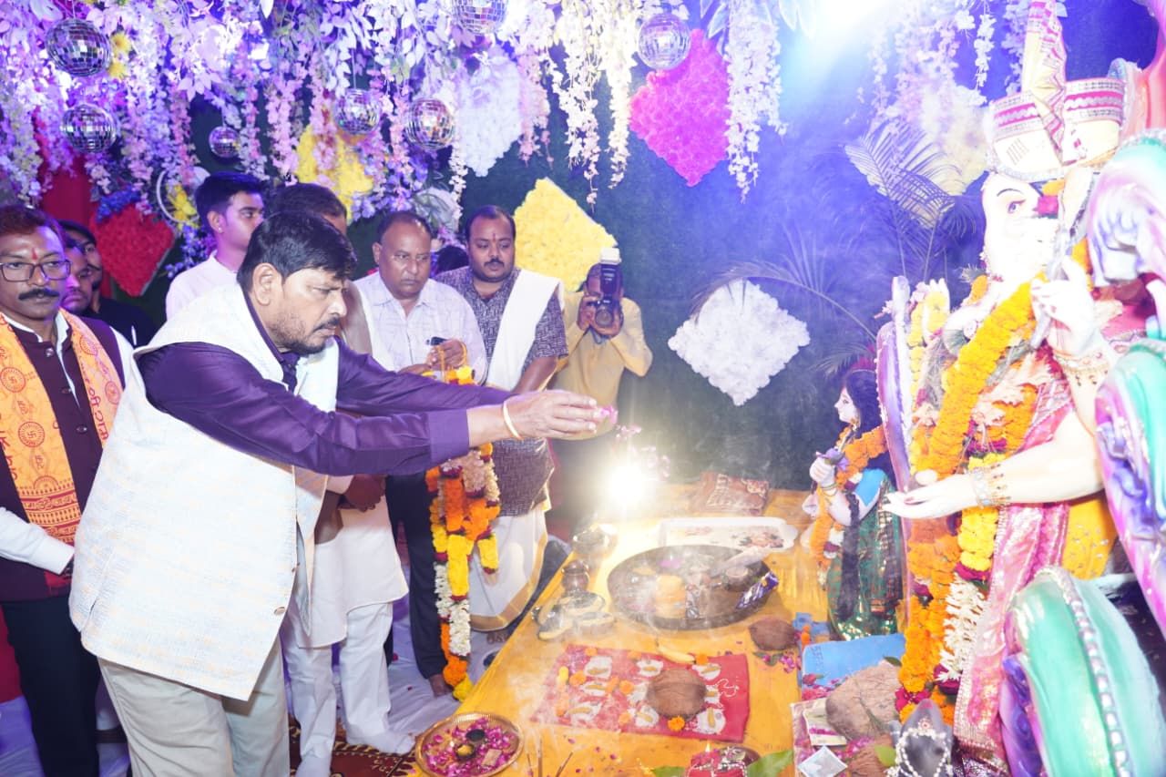 चक्रधर समारोह 2025* देश ही नहीं, पूरी दुनिया में प्रतिष्ठित हो रहा है चक्रधर समारोह-केंद्रीय राज्य मंत्री श्री रामदास अठावले*प्रधानमंत्री श्री नरेंद्र मोदी के नेतृत्व में हो रहा है समाज के हर वर्ग का उत्थान*आठवीं संध्या में केंद्रीय राज्य मंत्री श्री रामदास अठावले की गरिमामयी उपस्थिति*भगवान गणेश पूजन व दीप प्रज्वलन के साथ हुआ चक्रधर समारोह का शुभारंभरायगढ़ @संदेशा 24रायगढ़ के रामलीला मैदान में आयोजित अंतरराष्ट्रीय ख्याति प्राप्त चक्रधर समारोह 2025 की आठवीं संध्या सुर, ताल, छंद और घुंघरू की मधुर लय से सजी। इस अवसर पर केंद्रीय राज्य मंत्री, सामाजिक न्याय एवं अधिकारिता मंत्रालय, भारत सरकार श्री रामदास अठावले मुख्य अतिथि के रूप में शामिल हुए। उन्होंने भगवान श्री गणेश की पूजा-अर्चना, राजा चक्रधर के चित्र पर पुष्प अर्पित कर तथा दीप प्रज्वलित कर समारोह का शुभारंभ किया। इस मौके पर राज्यसभा सांसद श्री देवेंद्र प्रताप सिंह, नगर निगम रायगढ़ महापौर श्री जीवर्धन चौहान, सभापति श्री डिग्री लाल साहू, कलेक्टर श्री मयंक चतुर्वेदी, पुलिस अधीक्षक श्री दिव्यांग पटेल सहित अनेक जनप्रतिनिधि एवं गणमान्य नागरिक उपस्थित रहे।