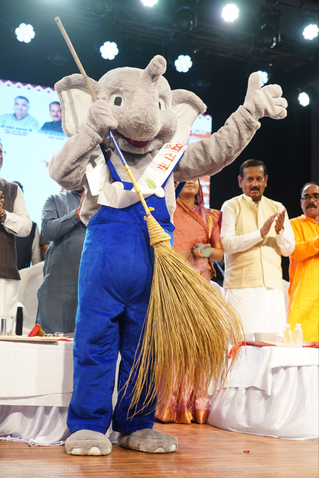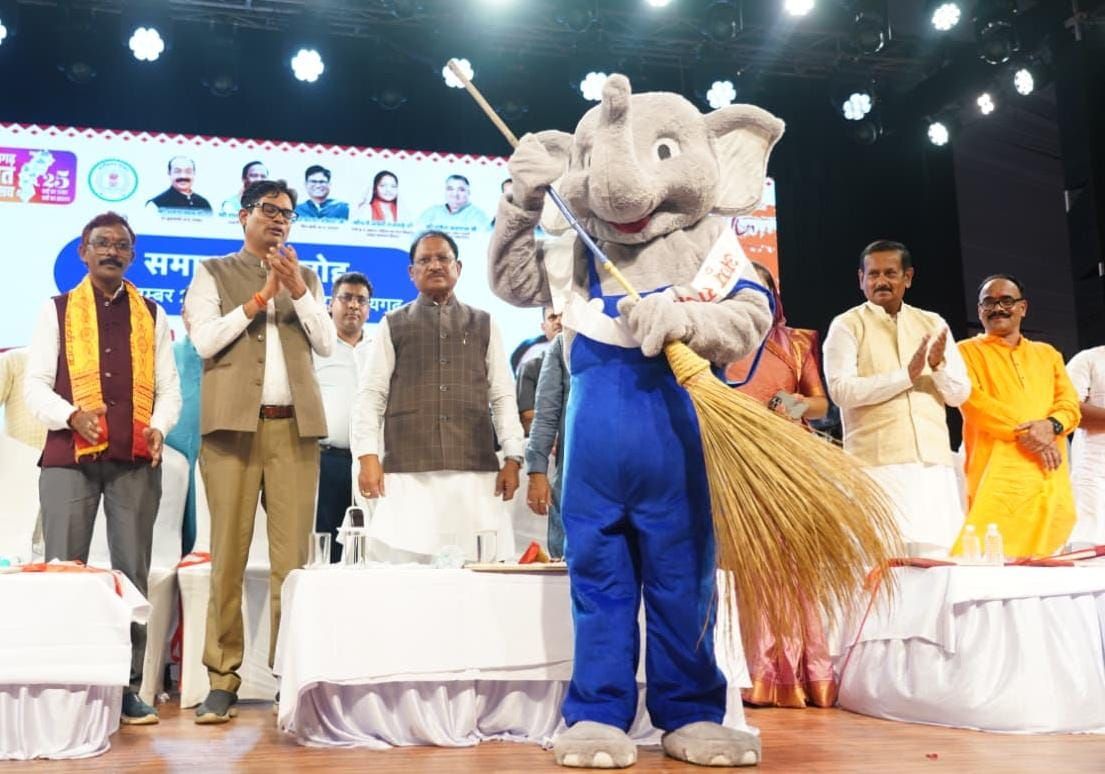 /छत्तीसगढ़ राज्य की रजत जयंती वर्षगांठ के अवसर पर रायगढ़ में आयोजित चक्रधर समारोह के अंतिम दिवस प्रदेश के मुख्यमंत्री श्री विष्णु देव साय ने नगर निगम रायगढ़ में अभिनव पहल स्वच्छता जागरूकता के शुभंकर “अप्पू राजा” लोकार्पित किया। इस पहल का उद्देश्य “सुग्घर रायगढ़, आरुग रायगढ़” की परिकल्पना को मूर्त रूप देना और शहर को स्वच्छ, स्वस्थ एवं आकर्षक स्वरूप प्रदान करना है। इस अवसर पर उप मुख्यमंत्री श्री अरुण साव, वित्त मंत्री श्री ओ.पी. चौधरी, महिला एवं बाल विकास मंत्री श्रीमती लक्ष्मी राजवाड़े, राज्यसभा सांसद श्री देवेंद्र प्रताप सिंह, लोकसभा सांसद श्री राधेश्याम राठिया, महापौर श्री जीवर्धन चौहान सहित जनप्रतिनिधि, अधिकारी और नागरिकगण उपस्थित थे।