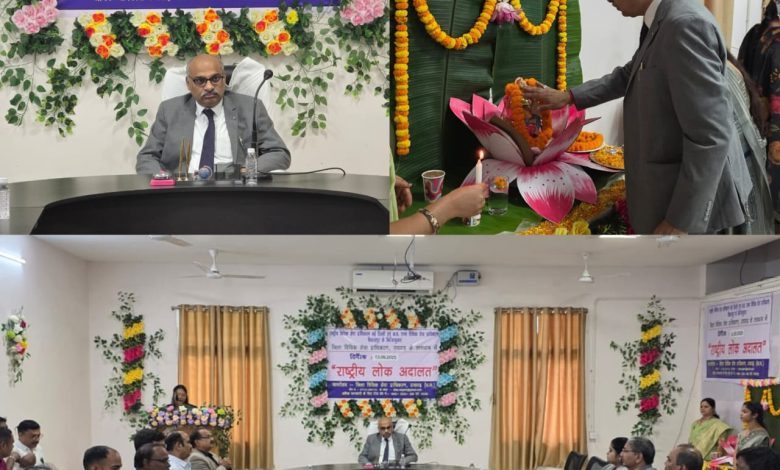 नेशनल लोक अदालत: 681568 मामलों का निपटारा, 93 करोड़ से अधिक राशि का हुआ सेटलमेंटरायगढ़ @संदेशा 24राष्ट्रीय विधिक सेवा प्राधिकरण नई दिल्ली एवं छत्तीसगढ़ राज्य विधिक सेवा प्राधिकरण बिलासपुर के निर्देशानुसार आज रायगढ़ जिले में नेशनल लोक अदालत का आयोजन किया गया। इस अवसर पर श्री जितेन्द्र कुमार जैन, प्रधान जिला न्यायाधीश/अध्यक्ष जिला विधिक सेवा प्राधिकरण ने जिला न्यायालय रायगढ़ के न्यायालयीन सभागार में मॉ सरस्वती की प्रतिमा के समक्ष द्वीप प्रज्जवलित कर नेशनल लोक अदालत के आयोजन का शुभारंभ किया ।
