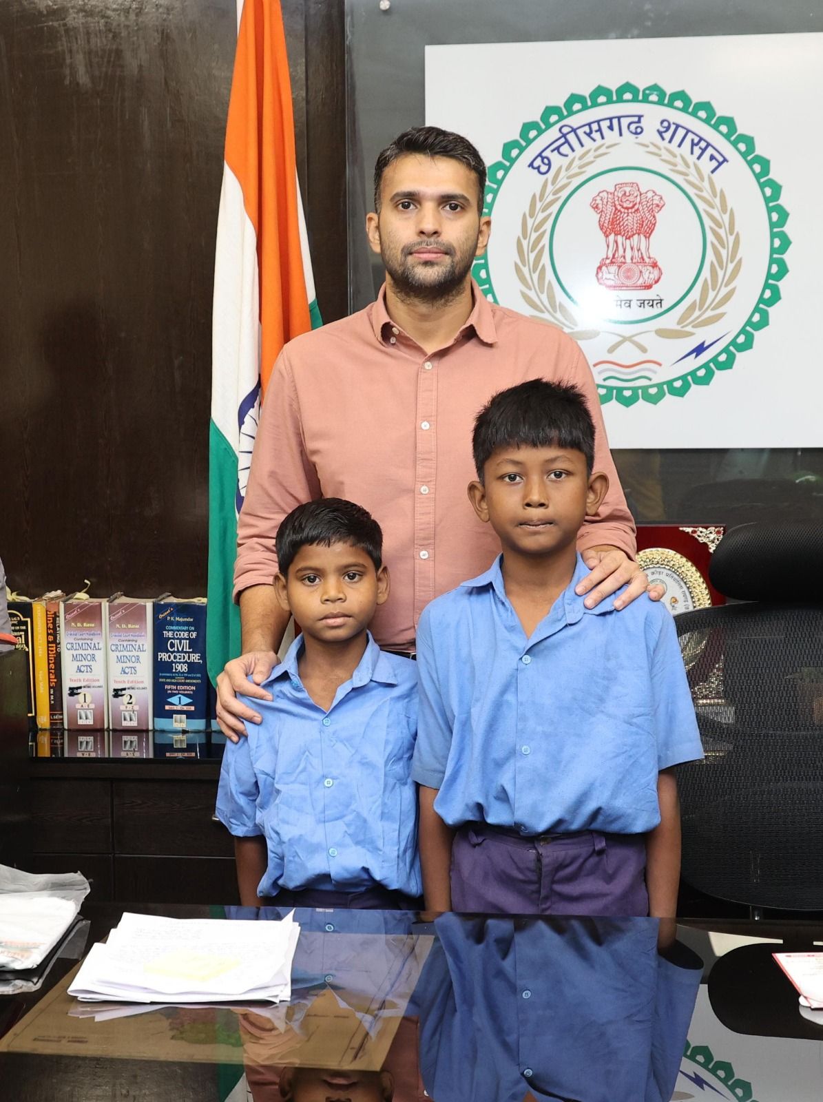 कलेक्टर श्री मयंक चतुर्वेदी ने आज जिला कलेक्टोरेट में दो साहसी बच्चों राकेश मिंज और आर्यन खेस से भेंट कर उनके अदम्य साहस की सराहना की। इन दोनों बच्चों ने अपने साहस और सूझबूझ से 5 वर्षीय बालक दादू मिंज को नाले के बहते पानी में डूबने से बचाकर उसकी जान बचाई थी।