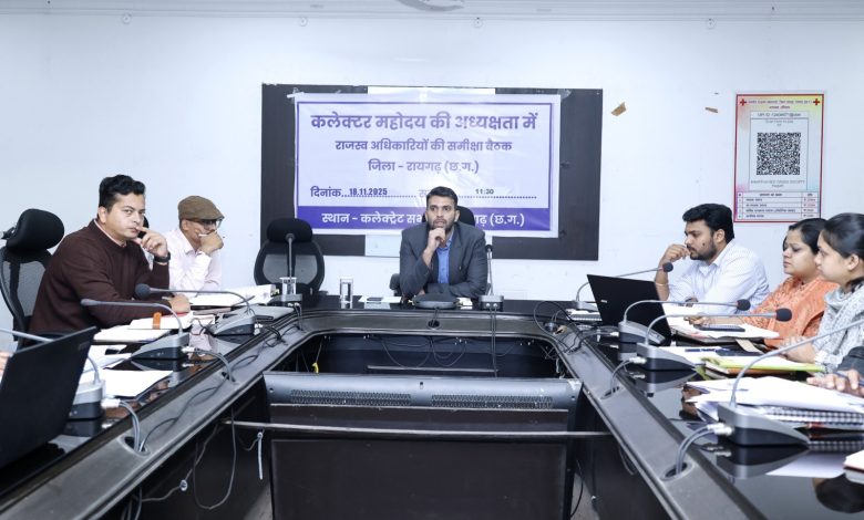 कलेक्टर श्री मयंक चतुर्वेदी ने समीक्षा बैठक में नक्शा बटांकन कार्य की विस्तृत समीक्षा करते हुए तहसील कापू, खरसिया, घरघोड़ा, छाल, तमनार, धरमजयगढ़, पुसौर, मुकडेगा, रायगढ़ और लैलूंगा के अधिकारियों को 15 दिनों की समय-सीमा में प्रगति लाने का लक्ष्य निर्धारित किया। उन्होंने मिसल से खसरा मिलान की प्रविष्टि में तेजी लाने के निर्देश दिए। अतिरिक्त कलेक्टर न्यायालय एवं राजस्व अनुविभागीय न्यायालयों में लंबित मामलों की समीक्षा कर शीघ्र प्रगति लाने को कहा। भू-अर्जन के लंबित प्रकरणों पर भी सख्त रुख अपनाते हुए शीघ्र निष्पादन के निर्देश दिए।