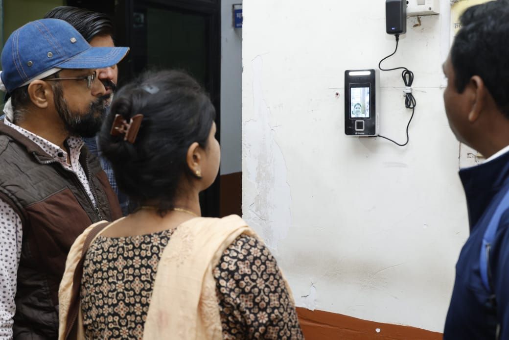 *अधिकारी-कर्मचारियों ने फेस रीडिंग और थंब स्कैन से दर्ज की उपस्थिति*