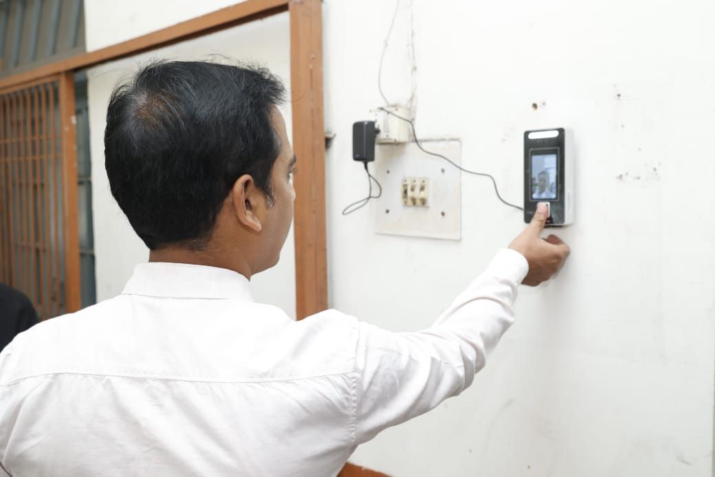 *मुख्य गेट के सामने और पीछे लगाए गए आधुनिक बायोमेट्रिक डिवाइस*