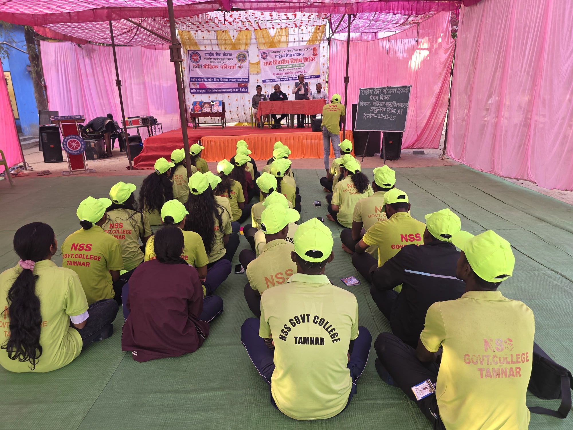 चतुर्थ दिवस 28.11.2025 को सामुदायिक स्वास्थ्य केंद्र तमनार के कर्मचारियों द्वारा स्वास्थ्य जांच शिविर लगाया गया जिसमें ग्रामीणों एवं शिविरार्थियों के स्वास्थ्य की जांच कर उन्हें दवा वितरित की गई। पंचम दिवस के बौद्धिक परिचर्चा सत्र में शासकीय महाविद्यालय घरघोड़ा के प्राचार्य डॉ पवन अग्रवाल , सहायक प्राध्यापक श्री संतोष देवांगन रासेयो कार्यक्रम अधिकारी श्री विभीषण सिदार एवं प्रयोगशाला सहायक श्री रोहित बेहरा जी मौजूद थे। छठवें दिवस जिला संगठक श्री भोजराम पटेल जी ने शिविर का निरीक्षण कर स्वयंसेवकों को संबोधित एवं प्रेरित किया।