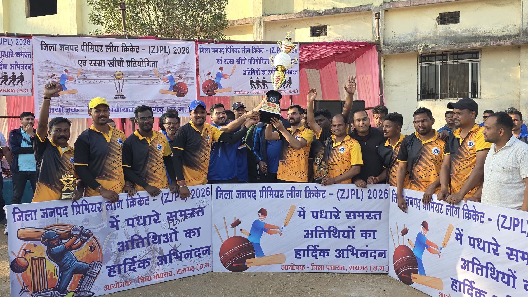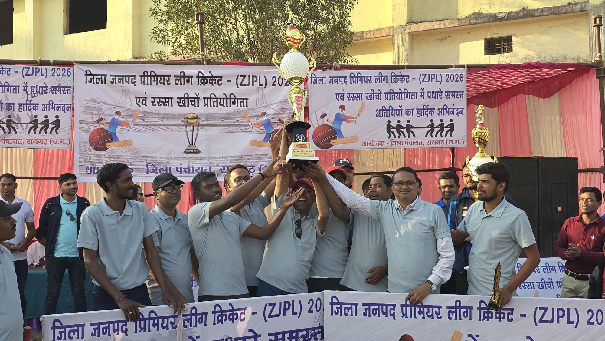 जिला पंचायत रायगढ़ के तत्वावधान में आयोजित जिला-जनपद प्रीमियर लीग 2026 अंतर्गत दो दिवसीय टेनिस बॉल क्रिकेट एवं महिला वर्ग रस्सा कस्सी प्रतियोगिता का आयोजन 17 एवं 18 जनवरी को डिग्री कॉलेज लाल मैदान, रायगढ़ में संपन्न हुआ। प्रतियोगिता में जिले के 07 जनपद पंचायतों एवं जिला पंचायत रायगढ़ की टीमों ने उत्साहपूर्वक सहभागिता की। शनिवार को सभी टीमों के मध्य नॉकआउट मुकाबले खेले गए।
