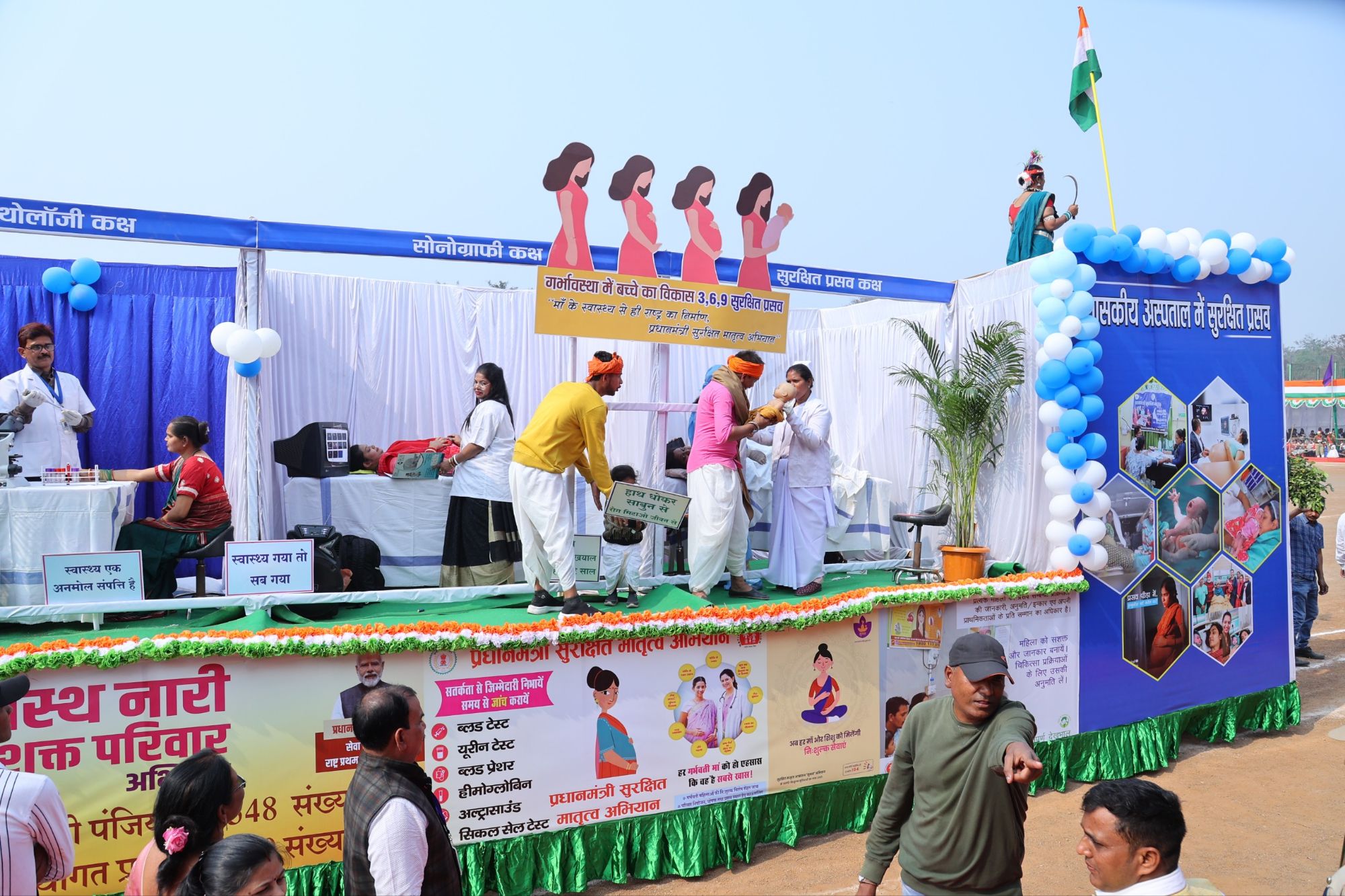 परिवहन विभाग द्वारा ईवी चार्जिंग स्टेशन की जानकारी प्रस्तुत की गई। पशुधन विकास विभाग द्वारा स्वस्थ पशु-समृद्ध प्रदेश-समृद्ध देश और 25 वर्षों की प्रमुख उपलब्धियों को प्रदर्शित किया गया। महिला एवं बाल विकास विभाग द्वारा रेडी-टू-ईट यूनिट, मछली पालन विभाग द्वारा फुटकर मत्स्य विक्रय योजना, रेशम विभाग द्वारा टसर कीट पालन, आदिवासी विकास विभाग द्वारा आदि सेवा केंद्र एवं आदि कर्मयोगी अभियान, लोक स्वास्थ्य यांत्रिकी विभाग द्वारा हर घर नल से जल, कृषि विभाग द्वारा प्राकृतिक खेती एवं सेवा सहकारी समिति, पंचायत एवं ग्रामीण विकास विभाग द्वारा बैंक सखी, लखपति दीदी, कृषि सखी, अटल डिजिटल सुविधा केंद्र, विकसित भारत विकसित ग्राम एवं स्वच्छता तथा उद्यानिकी विभाग द्वारा ऑयल पाम पौधारोपण को प्रदर्शित किया गया।
