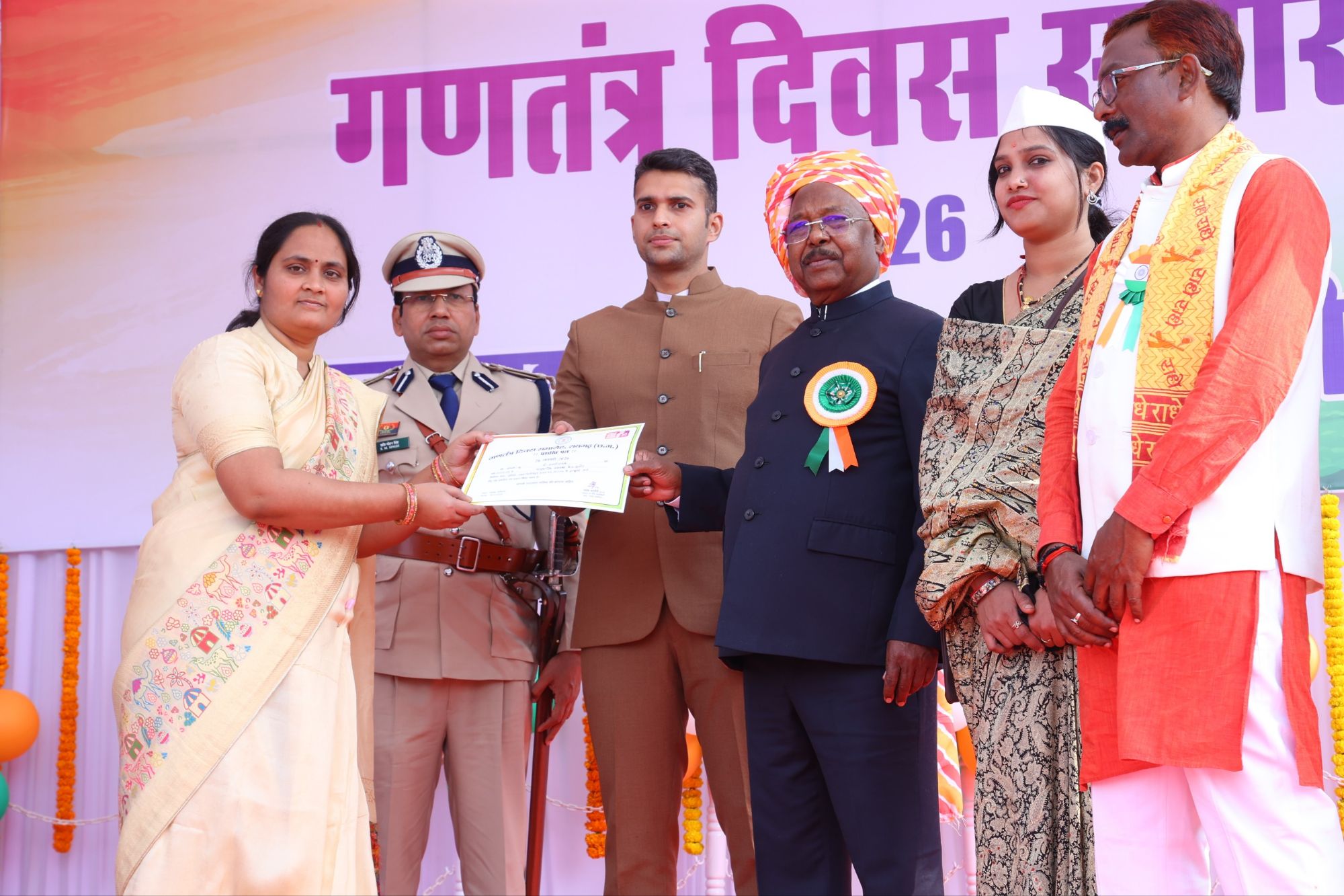 रायगढ़ जिले में 77वां गणतंत्र दिवस हर्ष, उल्लास एवं देशभक्ति वातावरण में मनाया गया। शहीद कर्नल विप्लव त्रिपाठी स्टेडियम में आयोजित जिला स्तरीय मुख्य समारोह में आदिम जाति विकास, अनुसूचित जाति विकास, पिछड़ा वर्ग विकास, अल्पसंख्यक विकास विभाग, कृषि विकास एवं किसान कल्याण मंत्री तथा जिले के प्रभारी मंत्री श्री रामविचार नेताम ने प्रातः 9 बजे राष्ट्रीय ध्वज फहराया। इसके पश्चात राष्ट्रगान और वंदे मातरम् का सामूहिक गायन किया गया तथा पुलिस बल, होमगार्ड, एनसीसी कैडेट्स एवं स्काउट गाइड की टुकड़ियों द्वारा मुख्य अतिथि को सलामी दी गई। मुख्य अतिथि ने कलेक्टर श्री मयंक चतुर्वेदी एवं वरिष्ठ पुलिस अधीक्षक श्री शशि मोहन सिंह के साथ परेड का निरीक्षण किया। समारोह में 11 प्लाटूनों द्वारा अनुशासित एवं आकर्षक मार्चपास्ट प्रस्तुत किया गया, जिसके पश्चात मुख्य अतिथि ने परेड कमांडरों से परिचय प्राप्त किया। इस अवसर पर आकाश में तिरंगे गुब्बारे छोड़े गए तथा वीर शहीदों के परिजनों को सम्मानित किया गया।