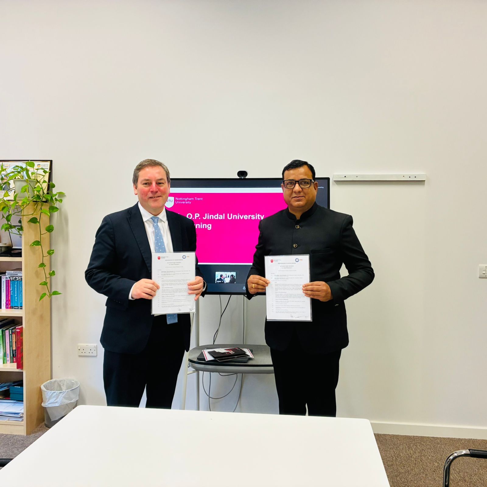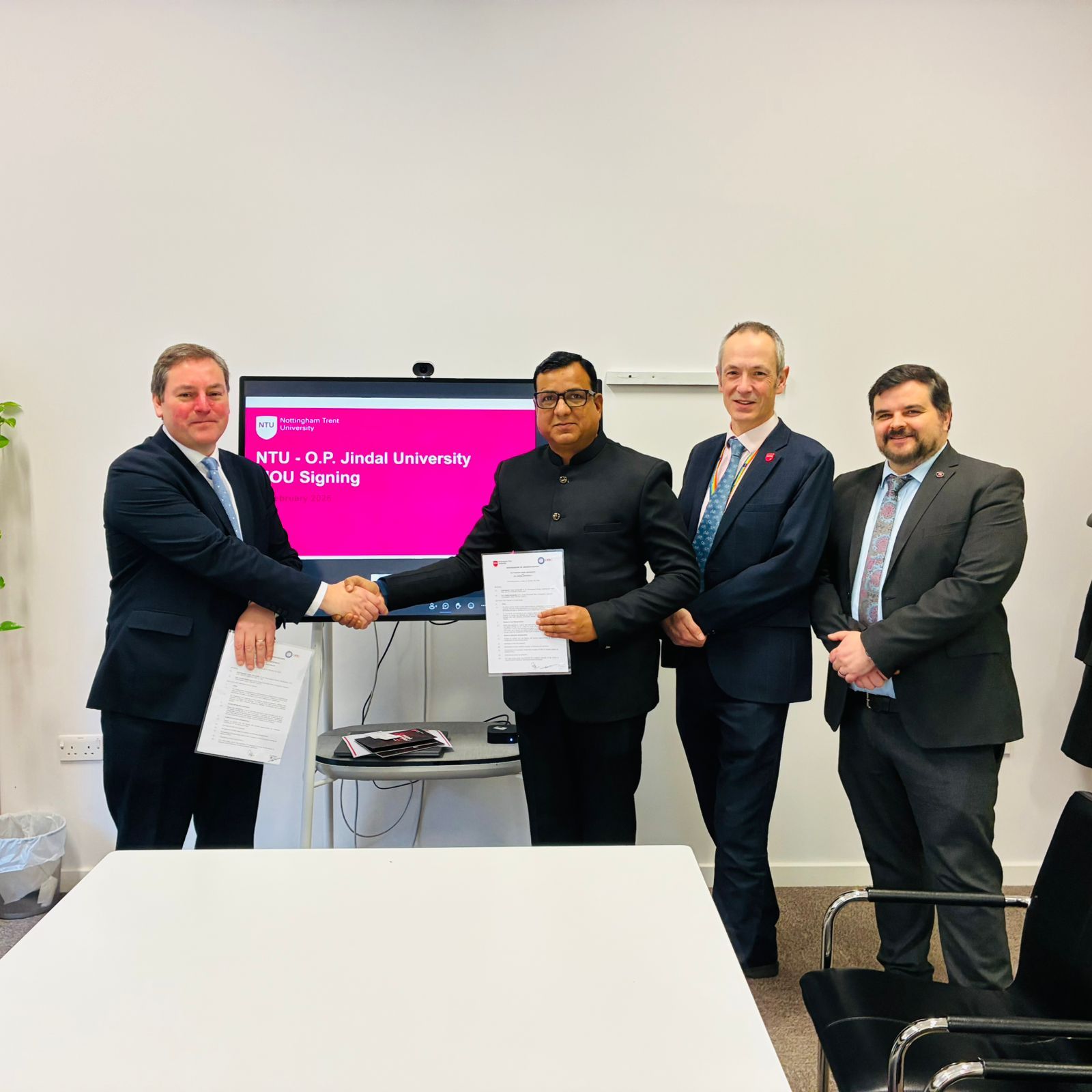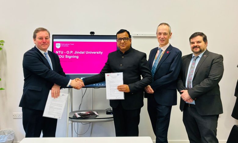 ओ.पी. जिंदल विश्वविद्यालय (ओपीजेयू), रायगढ़ ने अंतरराष्ट्रीय शैक्षणिक सहयोग को नई ऊँचाइयों तक पहुँचाते हुए 4 फरवरी 2026 को यूनाइटेड किंगडम के प्रतिष्ठित नॉटिंघम ट्रेंट विश्वविद्यालय (नॉटिंघम ट्रेंट यूनिवर्सिटी – NTU) के साथ एक महत्वपूर्ण समझौता ज्ञापन (Memorandum of Understanding – MoU) पर हस्ताक्षर किए। यह ऐतिहासिक साझेदारी ओपीजेयू की वैश्विक शैक्षणिक उपस्थिति को सुदृढ़ करने और अंतरराष्ट्रीय स्तर पर अकादमिक उत्कृष्टता, अनुसंधान तथा नवाचार को बढ़ावा देने की दिशा में एक निर्णायक उपलब्धि के रूप में देखी जा रही है।