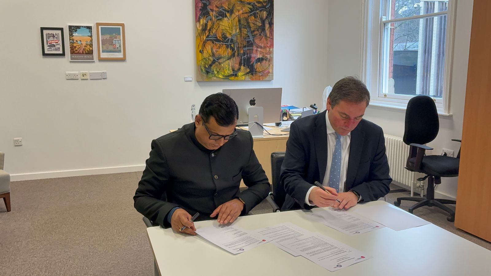 नॉटिंघम ट्रेंट विश्वविद्यालय की ओर से इस समझौते पर औपचारिक रूप से हस्ताक्षर डॉ. रिचर्ड एम्स, प्रो वाइस-चांसलर (रिसर्च एवं इंटरनेशनलाइज़ेशन) की गरिमामयी उपस्थिति में संपन्न हुए। इसके साथ ही कार्यक्रम में डॉ. क्लेयर न्यूस्टेड, को-डायरेक्टर, एनटीयू ग्लोबल; प्रोफेसर नील मैन्सफ़ील्ड, एग्ज़ीक्यूटिव डीन – रिसर्च एवं इंटरनेशनल रेप्युटेशन; तथा डॉ. केव गैरेथ, प्रोफेसर, स्कूल ऑफ़ साइंस एंड टेक्नोलॉजी सहित नॉटिंघम ट्रेंट विश्वविद्यालय के अनेक वरिष्ठ शैक्षणिक एवं नेतृत्वकारी अधिकारी उपस्थित रहे। उनकी गरिमामयी उपस्थिति ने इस अंतरराष्ट्रीय साझेदारी के रणनीतिक महत्व और इसकी दीर्घकालिक दृष्टि को और अधिक सुदृढ़ किया।