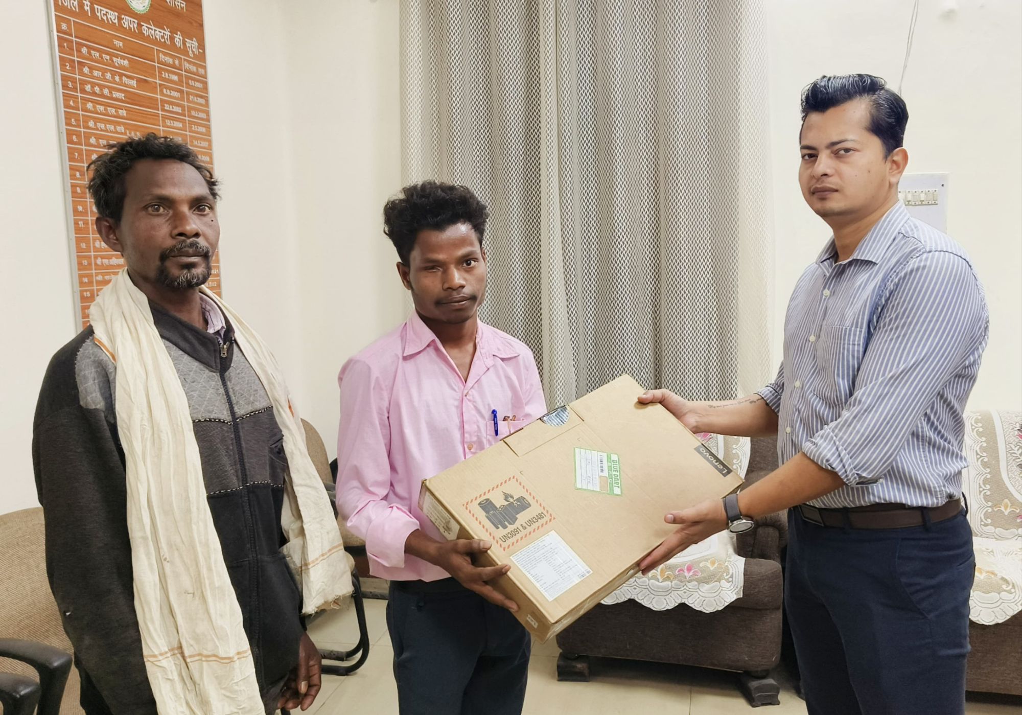 कलेक्टर के निर्देशानुसार जिला कलेक्टोरेट में अपर कलेक्टर श्री अपूर्व प्रियेश टोप्पो द्वारा गोविंद दास को लैपटॉप प्रदान किया गया। लैपटॉप प्राप्त होने से छात्र को स्वअध्ययन, ऑनलाइन अध्ययन सामग्री तथा शैक्षणिक कार्यों में सुविधा मिलेगी। इस अवसर पर छात्र एवं उसके पिता ने जिला प्रशासन के प्रति आभार व्यक्त किया। अपर कलेक्टर श्री टोप्पो ने कहा कि जिला प्रशासन का उद्देश्य है कि कोई भी प्रतिभावान छात्र केवल आर्थिक या संसाधनों की कमी के कारण अपनी पढ़ाई से वंचित न रहे।