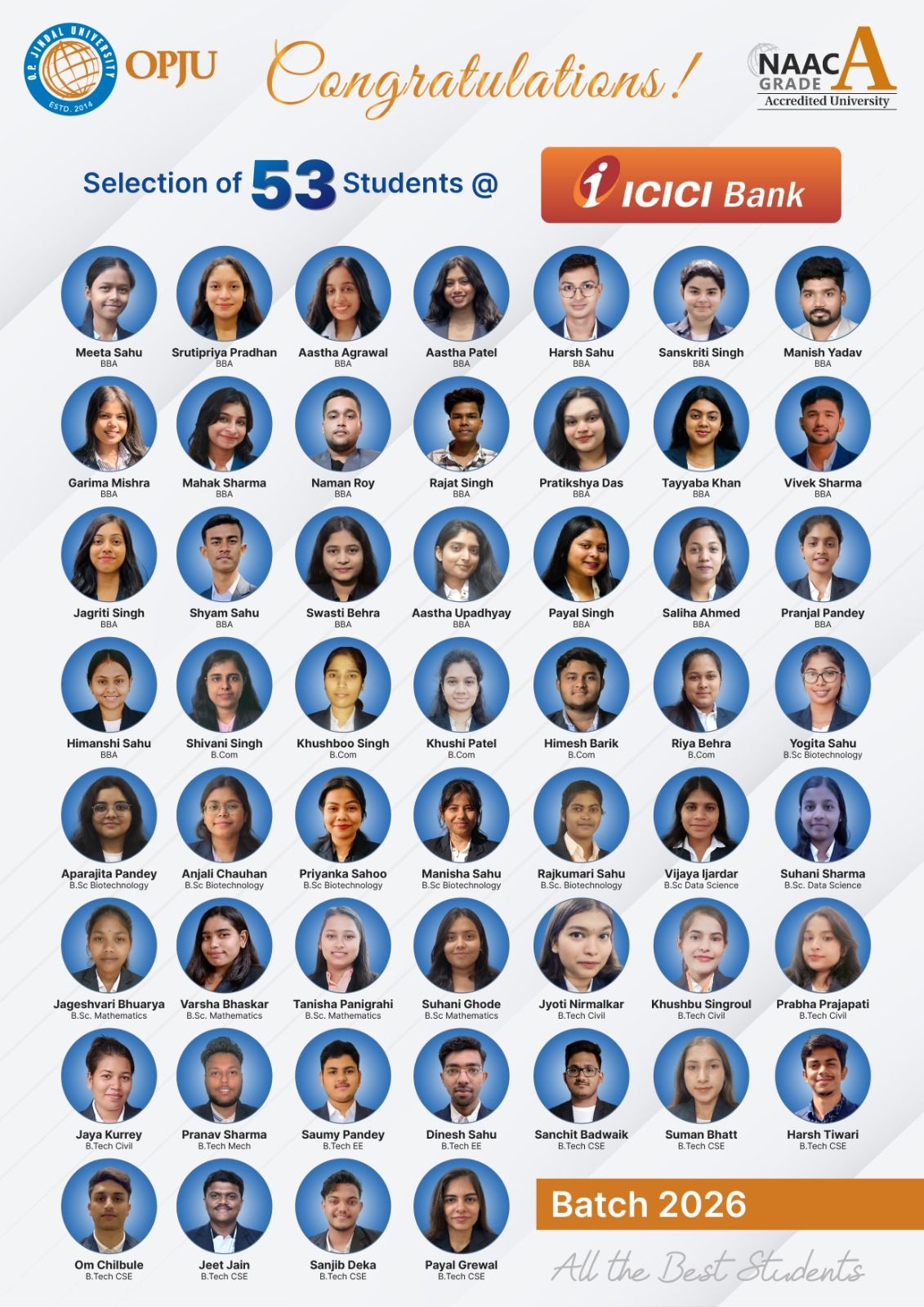 ओ.पी. जिंदल विश्वविद्यालय के छात्रों की “आईसीआईसीआई बैंक- प्लेसमेंट ड्राइव” में ऐतिहासिक छलांग