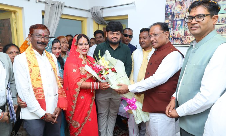 मुख्यमंत्री श्री विष्णु देव साय ने महापौर निवास पहुंच नवदम्पति को दिया आशीर्वाद