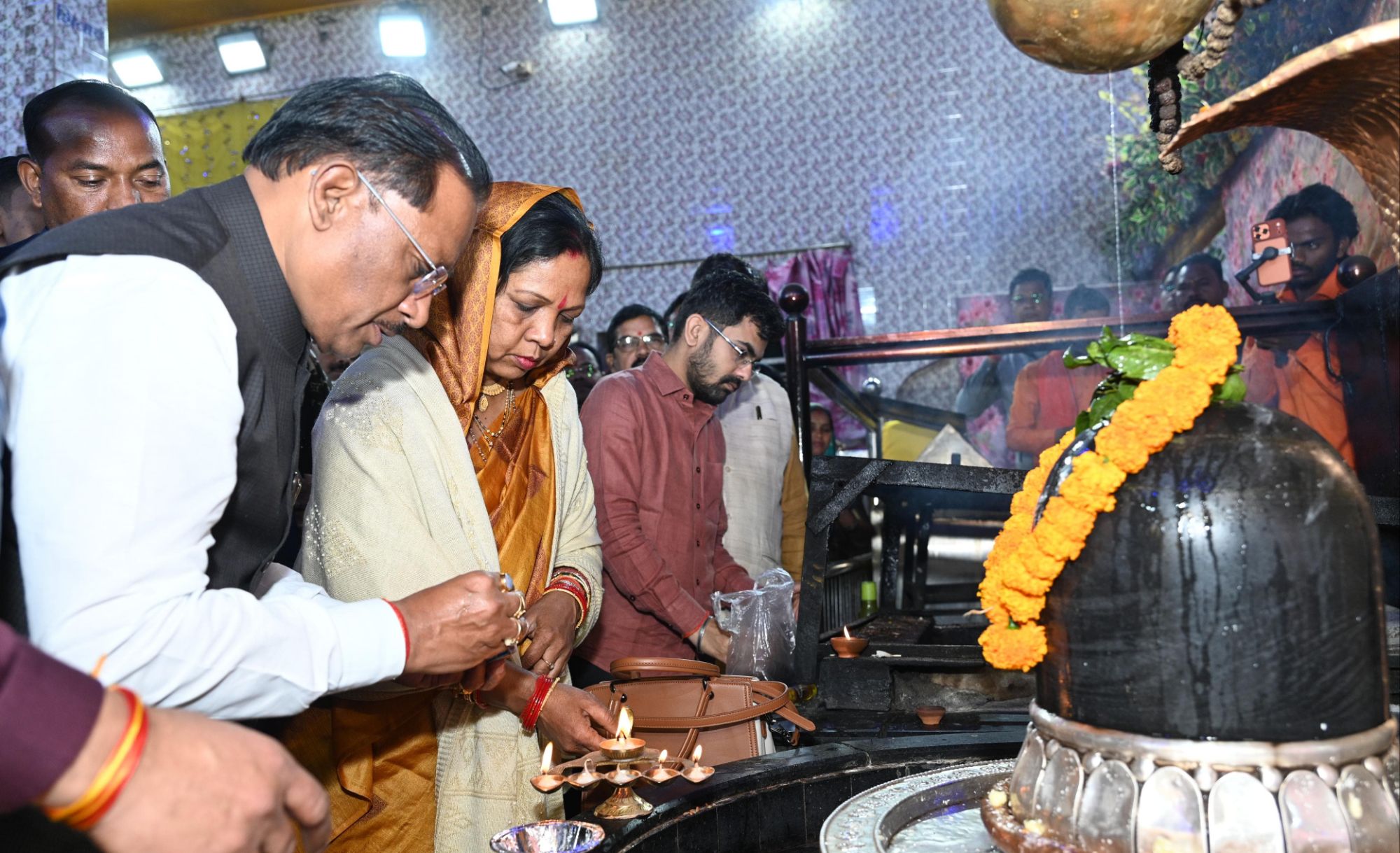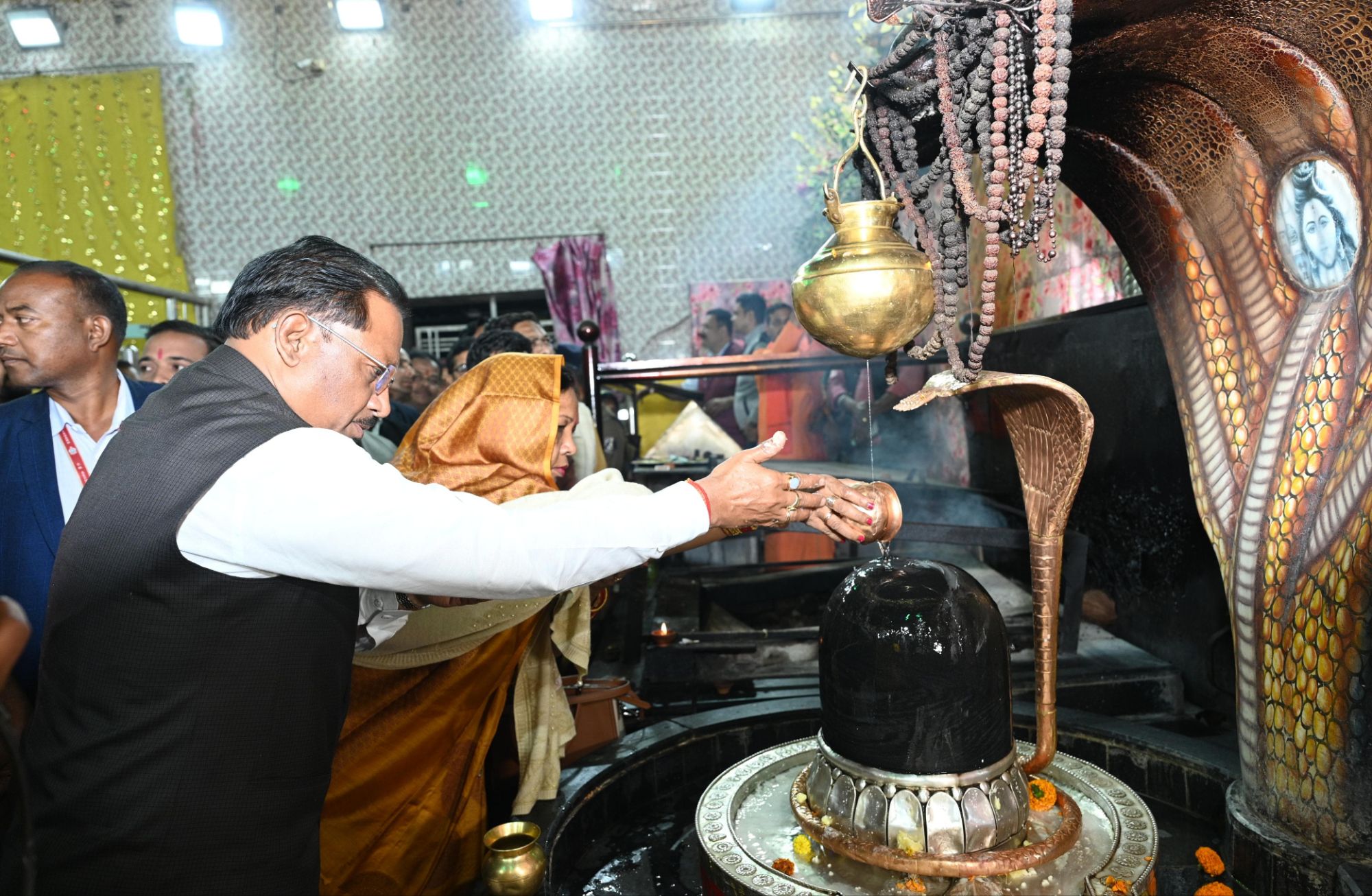 महाशिवरात्रि के पावन अवसर पर मुख्यमंत्री श्री विष्णु देव साय अपनी धर्मपत्नी श्रीमती कौशल्या साय के साथ रायगढ़ प्रवास के दौरान रात एक बजे ग्राम कोसमनारा स्थित श्री श्री 108 श्री सत्यनारायण बाबा धाम पहुंचे। उन्होंने भगवान भोलेनाथ एवं श्री श्री 108 श्री सत्यनारायण बाबा की विधिवत पूजा-अर्चना कर प्रदेशवासियों की सुख-समृद्धि और खुशहाल जीवन की कामना की। इस अवसर पर मुख्यमंत्री ने पूरे प्रदेश वासियों को महाशिवरात्रि पर्व की बधाई एवं शुभकामनाएं दी।