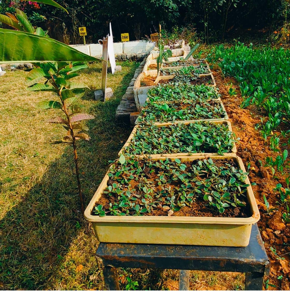 विद्यालय परिसर में विकसित किचन गार्डन, हर्बल गार्डन, मसाला बगान और गुलाब गार्डन में लगभग 128 प्रजातियों के फलदार, फूलदार एवं औषधीय पौधे लगाए गए हैं। अंजीर, सेव, चंदन, नींबू, कटहल, चिकोतरा और मौसंबी जैसे पौधों के माध्यम से बच्चों को पर्यावरण एवं व्यवहारिक ज्ञान दिया जा रहा है।