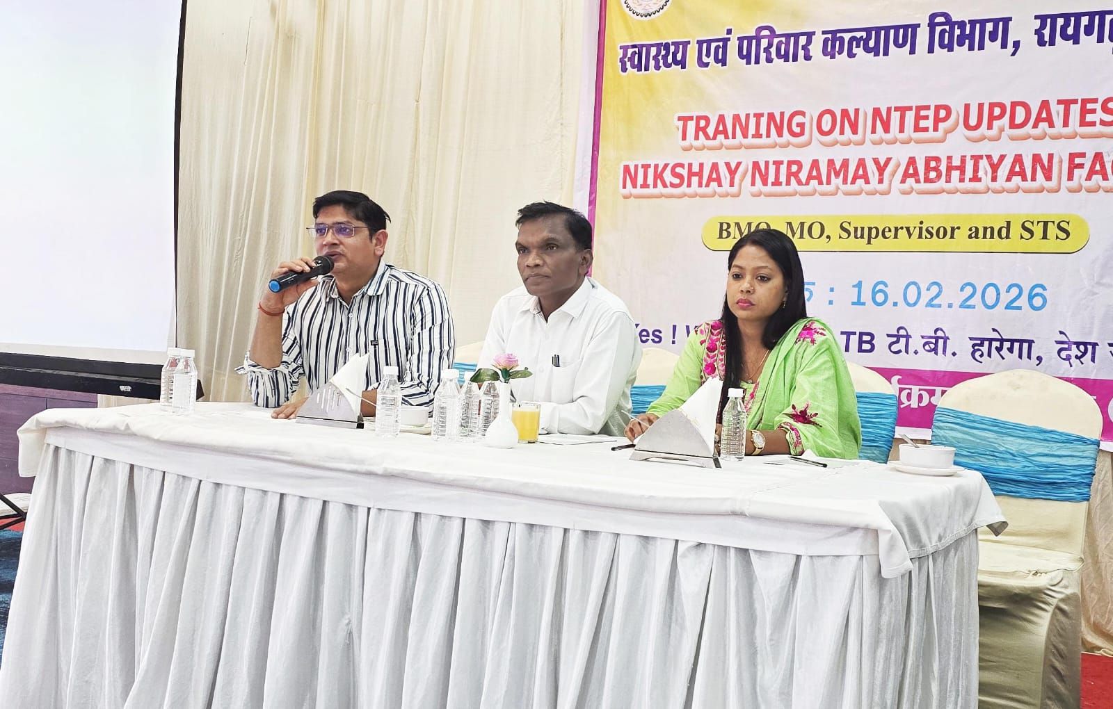 निक्षय निरामय अभियान 2.0 के सुचारू एवं प्रभावी संचालन हेतु आज जिला स्तर पर खंड चिकित्सा अधिकारियों, चिकित्सा अधिकारियों तथा पर्यवेक्षकों के लिए रायगढ़ में प्रशिक्षण कार्यशाला आयोजित की गई। यह प्रशिक्षण कलेक्टर श्री मयंक चतुर्वेदी के मार्गदर्शन में आयोजित हुआ। इसका उद्देश्य जिले में क्षय रोग उन्मूलन के प्रयासों को गति देना तथा अभियान की कार्यप्रणाली को और अधिक सुदृढ़ बनाना है। प्रशिक्षण में अभियान की रूपरेखा, सूक्ष्म कार्ययोजना, मरीजों की पहचान, जांच एवं उपचार की विस्तृत जानकारी दी गई। विशेष रूप से उच्च जोखिम समूह के संदेहास्पद मरीजों की पहचान कर समय पर जांच एवं उपचार सुनिश्चित करने पर बल दिया गया।
