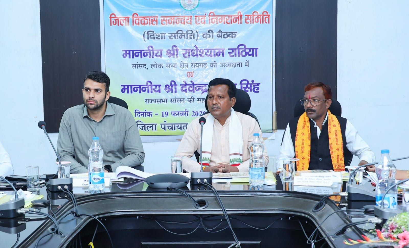 जिले में समग्र विकास सुनिश्चित करने तथा शिक्षा, स्वास्थ्य, विद्युत, कृषि और पेयजल सहित बुनियादी सुविधाओं को सुदृढ़ बनाने के उद्देश्य से जिला कलेक्ट्रेट सभाकक्ष में आज जिला विकास समन्वय एवं निगरानी समिति (दिशा) की बैठक आयोजित की गई। बैठक में लोकसभा सांसद श्री राधेश्याम राठिया, लैलूंगा विधायक श्रीमती विद्यावती सिदार, नगर निगम महापौर श्री जीवर्धन चौहान, सभी जनपदों के जनपद पंचायत अध्यक्ष सहित समिति के सदस्यगण, कलेक्टर श्री मयंक चतुर्वेदी, वनमंडलाधिकारी रायगढ़ श्री अरविंद पीएम, जिला पंचायत सीईओ श्री अभिजीत बबन पठारे तथा विभिन्न विभागों के जिला स्तरीय अधिकारी उपस्थित रहे।