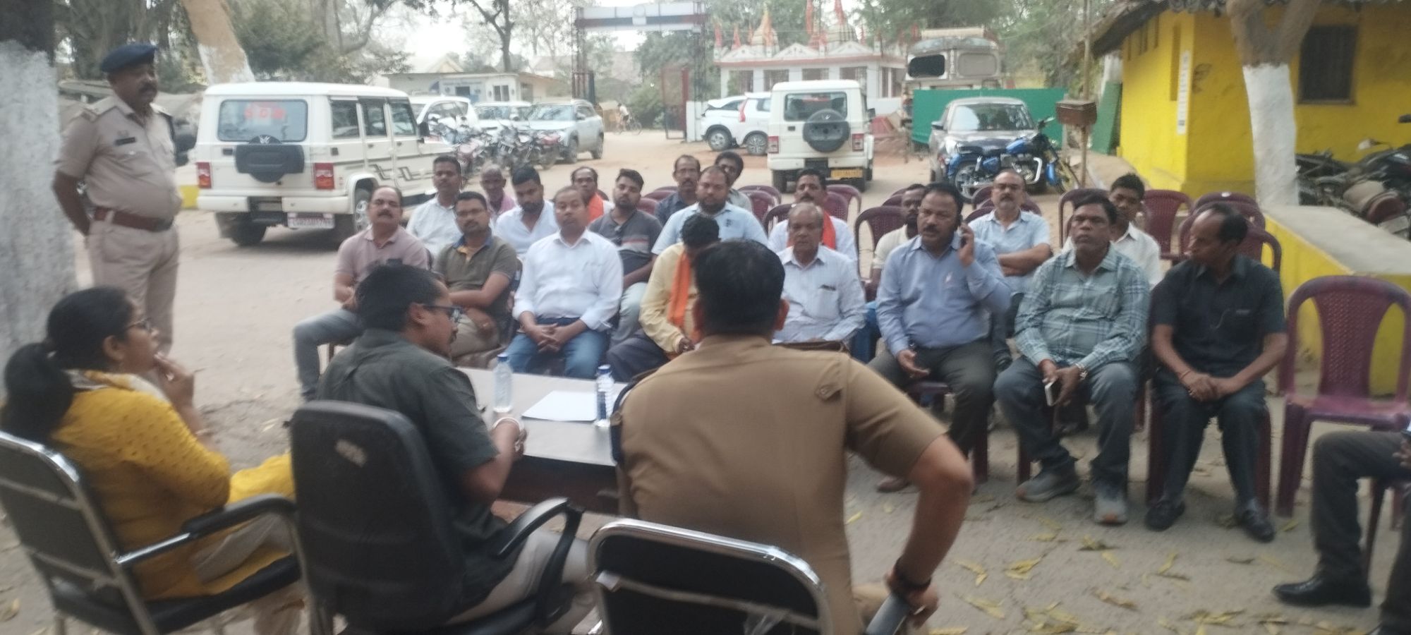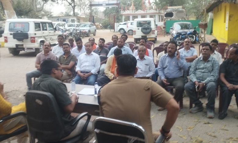 शांति समिति की बैठक में थाना प्रभारी निरीक्षक प्रशांत राव द्वारा आगंतुकों का स्वागत करते थाना अन्तर्गत गांव में शांति सौहार्दपूर्ण सदभावना भाईचारे के साथ होली उत्सव मनाने चर्चा परिचर्चा की गई। शराब के नशे में वाहन चलाने,तीन सवारी तेज रफ्तार वाहनों पर कार्यवाही करने बात कही गई। एसडीएम दुर्गा प्रसाद अधिकारी ने कहा कि गांव में शांति सौहार्दपूर्ण भाईचारे के साथ होली मनाएं । आप सभी की सहयोग से ही होली त्यौहार निर्विघ्न सम्पन्न होगी। होलिका दहन निर्धारित स्थान में जलाने,किसी के निजी संपत्ति का नुकसान न करने,बिना स्वीकृति के किसी को रंग गुलाल लगाने आम सड़क में न जलाने की अपील की गई।