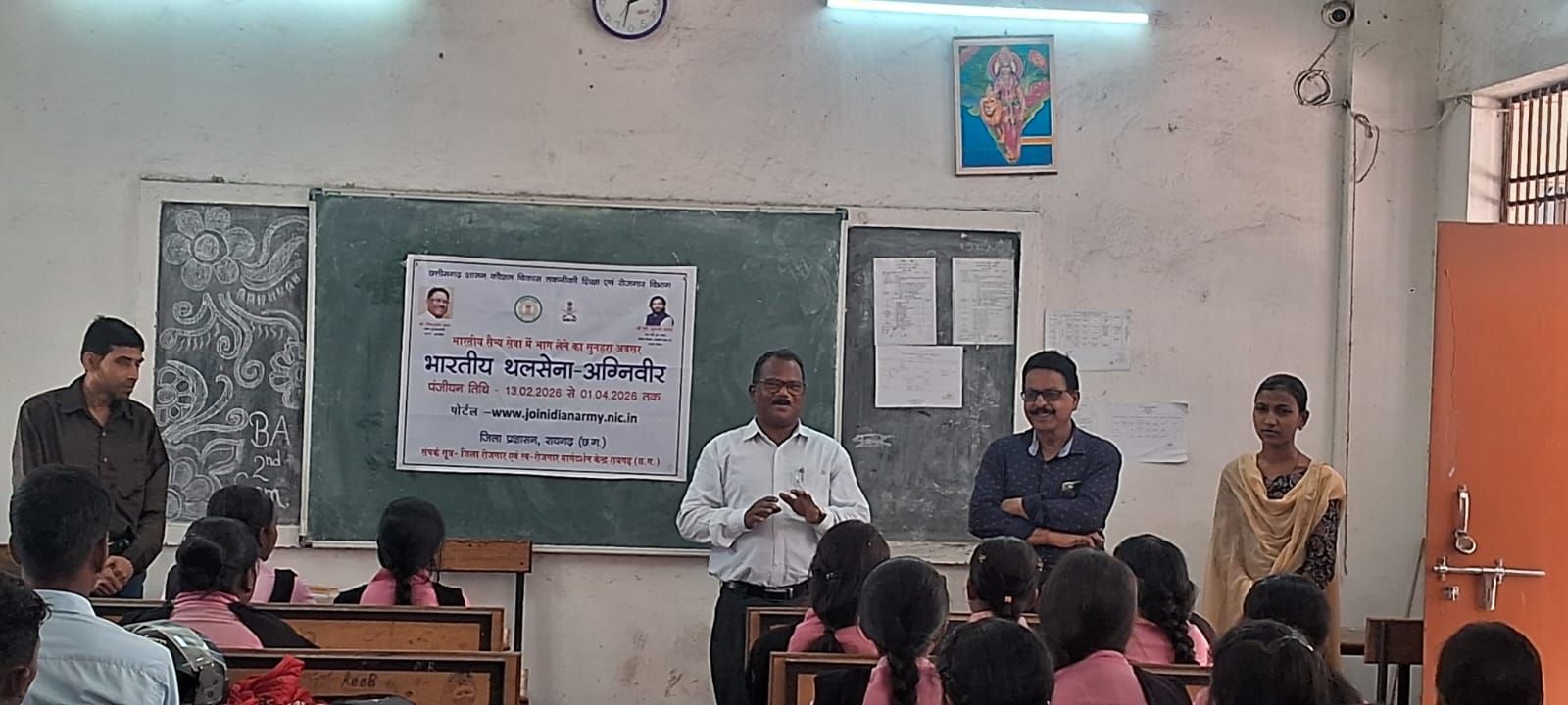 जिले के युवाओं को भारतीय थल सेना में सेवा का अवसर प्रदान करने के उद्देश्य से आज शासकीय महाविद्यालय तमनार में थलसेना अग्निवीर भर्ती के संबंध में व्यापक प्रचार-प्रसार एवं कैरियर मार्गदर्शन कार्यक्रम का आयोजन किया गया। इस दौरान विद्यार्थियों को भर्ती प्रक्रिया, पात्रता, चयन पद्धति एवं भविष्य की संभावनाओं के बारे में विस्तार से जानकारी दी गई। कार्यक्रम में उपस्थित अधिकारियों ने युवाओं को सेना में करियर बनाने हेतु प्रेरित करते हुए बताया कि अग्निवीर योजना न केवल रोजगार का अवसर है, बल्कि अनुशासन, कौशल और राष्ट्र सेवा का गौरव भी प्रदान करती है। विद्यार्थियों ने भी कार्यक्रम में रुचि लेते हुए विभिन्न प्रश्न पूछे, जिनका विशेषज्ञों द्वारा समाधान किया गया।