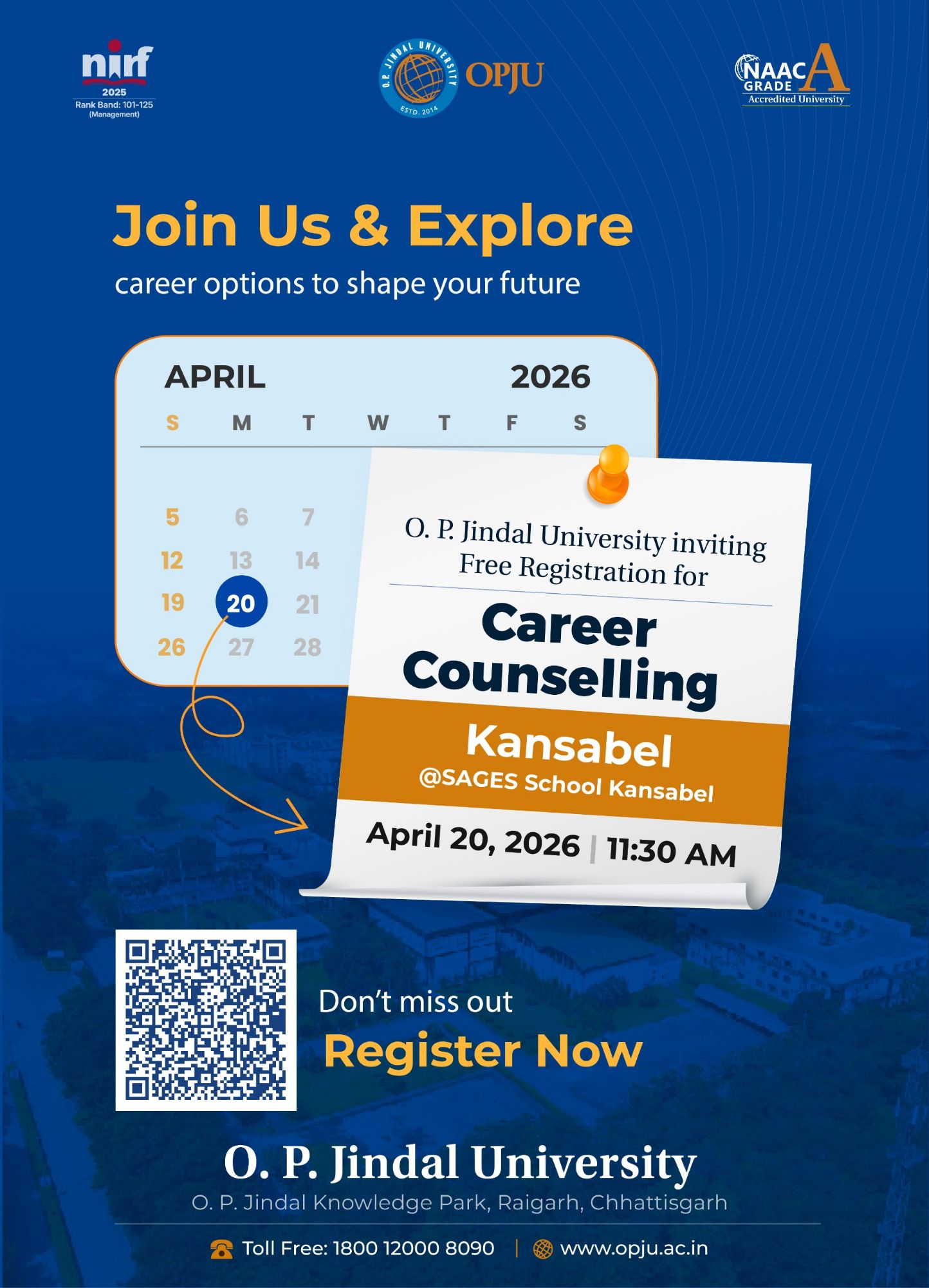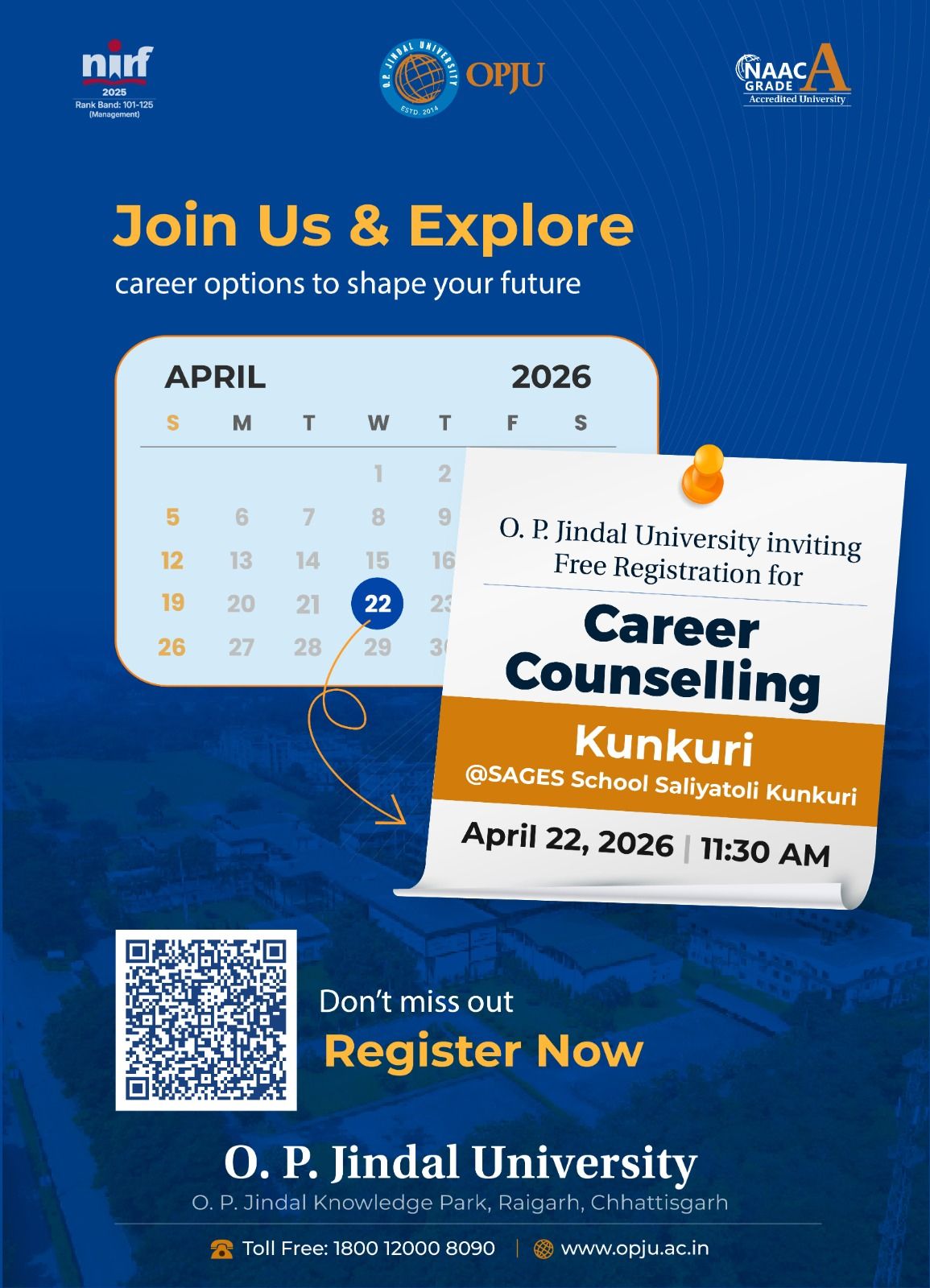 ओ.पी. जिंदल विश्वविद्यालय द्वारा “करियर काउंसलिंग” हेतु कांसाबेल एवं कुनकुरी में ‘ओपन हाउस’ का आयोजन 20 अप्रैल एवं 22 अप्रैल को
