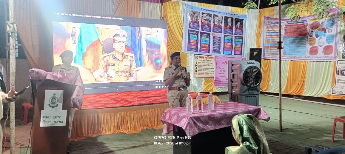 थाना पुसौर परिसर में 18 अप्रैल को रायगढ़ पुलिस द्वारा एक व्यापक जन-जागरूकता कार्यक्रम का आयोजन किया गया, जिसमें वरिष्ठ पुलिस अधीक्षक श्री शशि मोहन सिंह, उप पुलिस अधीक्षक उन्नति ठाकुर, प्रशिक्षु डीएसपी अजय नागवंशी, थाना प्रभारी पुसौर निरीक्षक हर्षवर्धन सिंह बैस, साइबर थाना प्रभारी निरीक्षक विजय चेलक सहित पुलिस स्टाफ, जनप्रतिनिधि, कोटवार और बड़ी संख्या में स्थानीय नागरिक शामिल हुए।