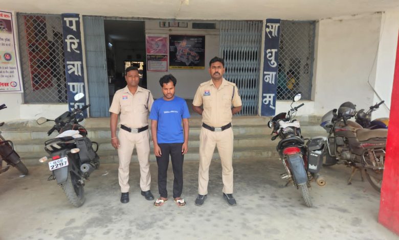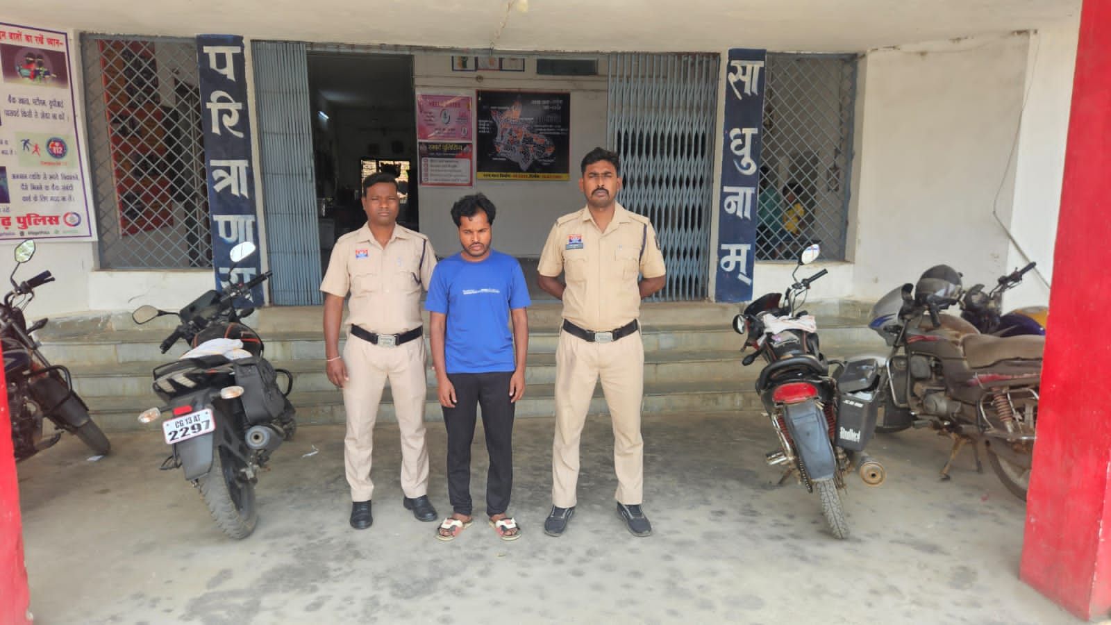 गिरफ्तार आरोपी- सदानंद भाट पिता काशी उम्र 34 वर्ष साकिन महेशपुर थाना बागबहार जिला जशपुर छ.ग.