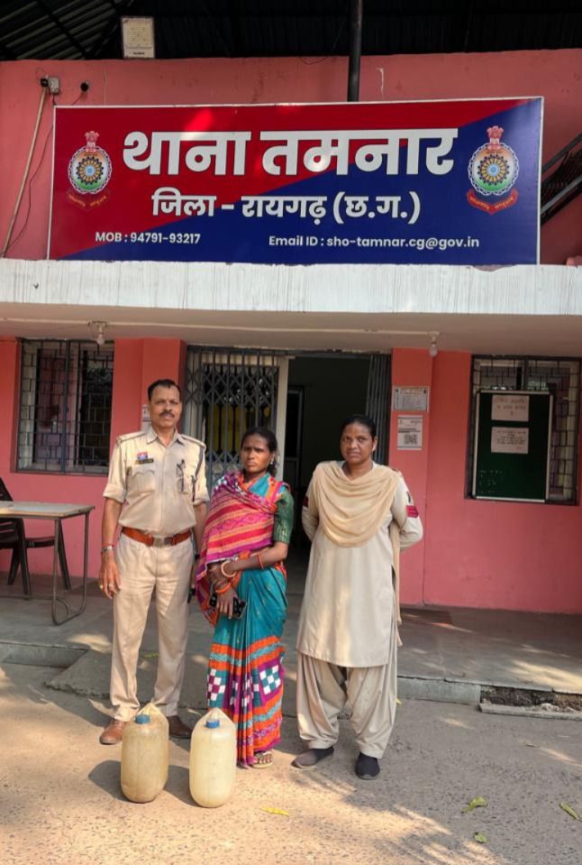 🚨 तमनार पुलिस की दो बड़ी रेड में 40 लीटर महुआ शराब और बिक्री रकम जब्त