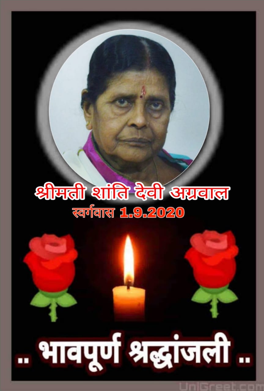 धनागर के श्रीमती शांति देवी अग्रवाल जी के निधन पर श्रद्धांजलि