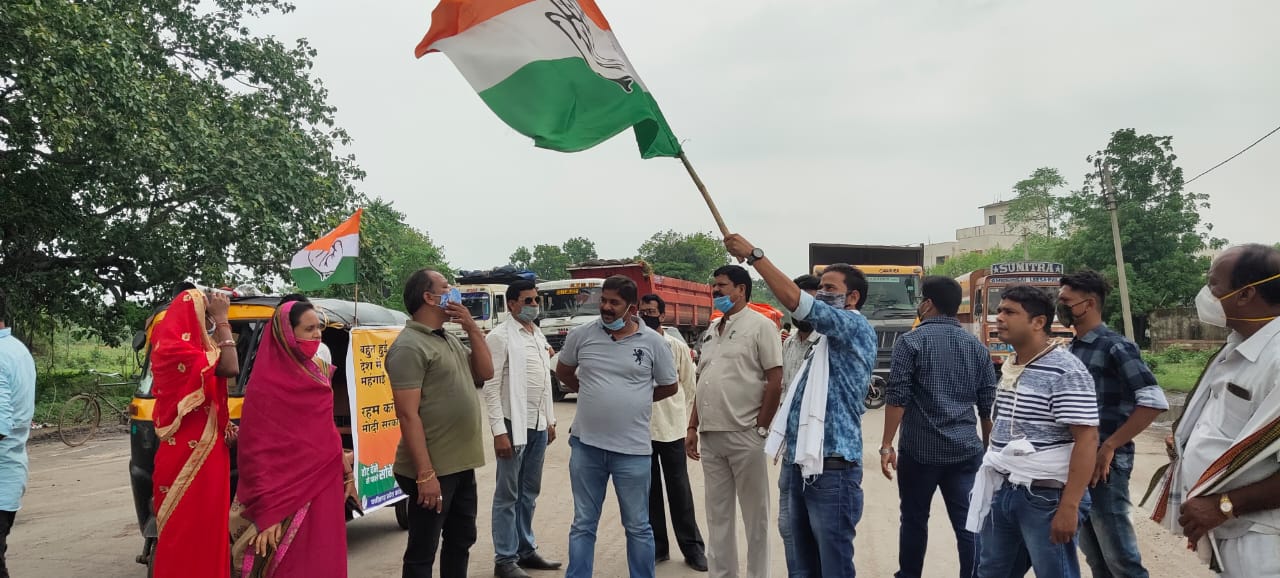 लगातार बढ़ती महंगाई के विरोध में केंद्र सरकार को जगाने तमनार के कांग्रेसियो ने किया सांकेतिक चक्का जाम