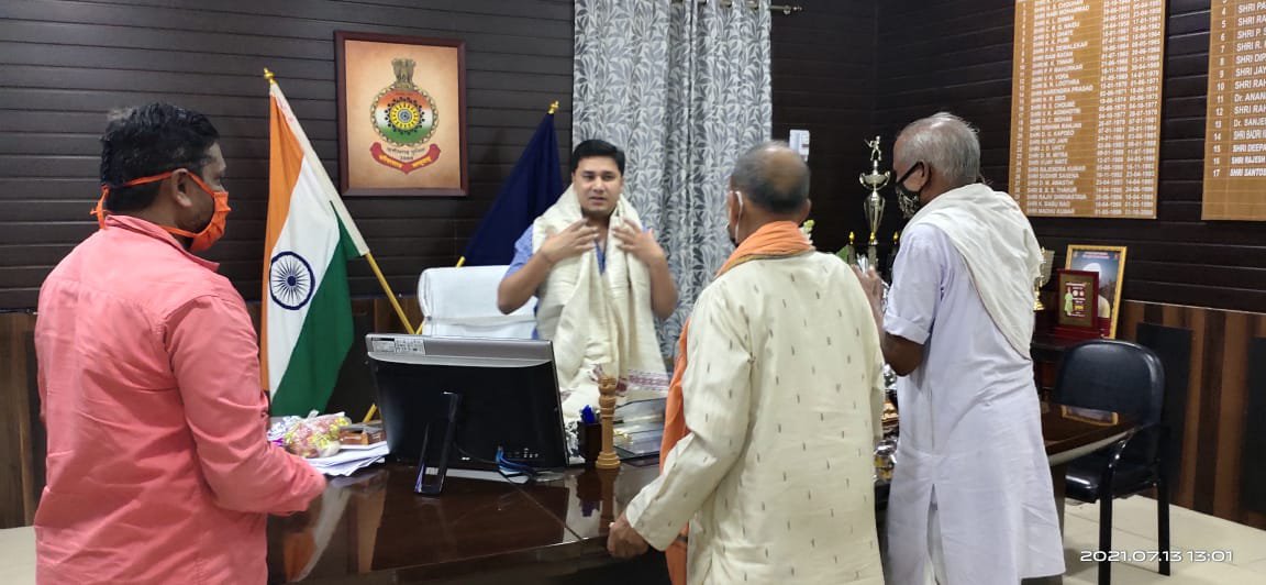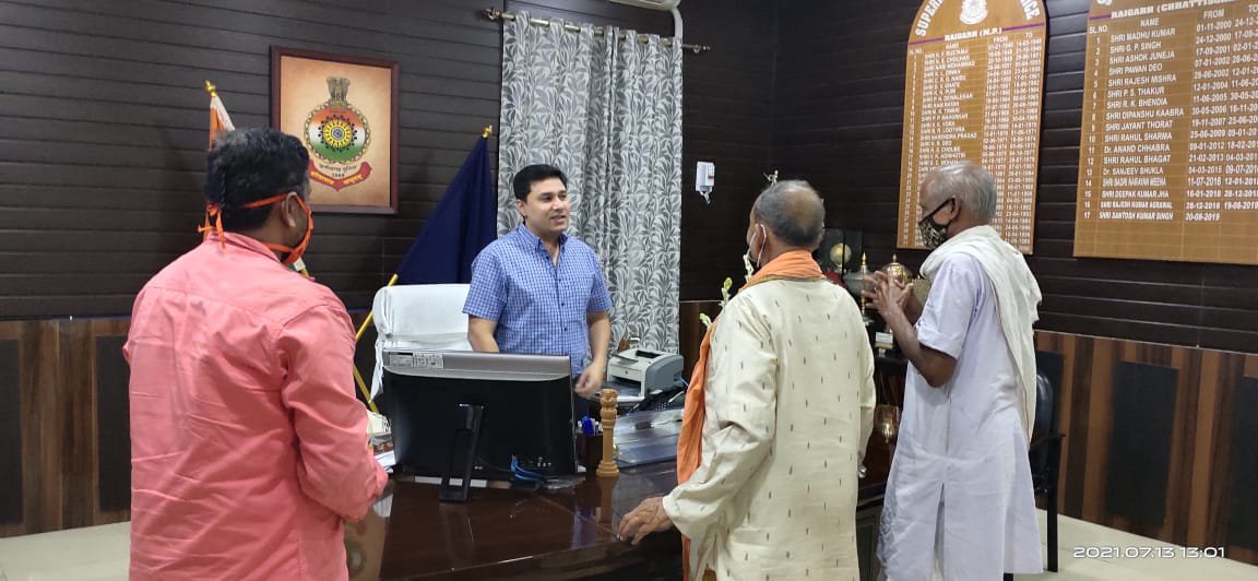 तमनार सर्वशक्तिपीठ मां बंजारी धाम समिति तराईमाल द्वारा 13 जुलाई को पुलिस अधीक्षक कार्यालय रायगढ़ में नवपदस्थ एसपी श्री अभिषेक मीणा से भेंट कर श्रीफल साल से सम्मान किया गया। माँ बंजारी धाम समिति के अंकुर गौटिया ने रायगढ़ जिले के प्रसिद्ध सर्व शक्तिपीठ मां बंजारी धाम के सम्बंध में बताया गया।समिति सदस्यों ने बताया कि पुलिस अधीक्षक महोदय के कुशल दिशा निर्देश में भव्य नवरात्र विशाल भंडारा में शान्ति सुरक्षा अनुशासन यातायात बेहतर व्यवस्था में सराहनीय योगदान दी जाती है। माँ बंजारी समिति द्वारा माँ बंजारी के दर्शन हेतु आग्रह किया गया।इस मौके पर अंकुर गौटिया,बांछानिधि भोय,दुलेन्द्र पटेल मुरली मालाकार उपस्थित रहे।