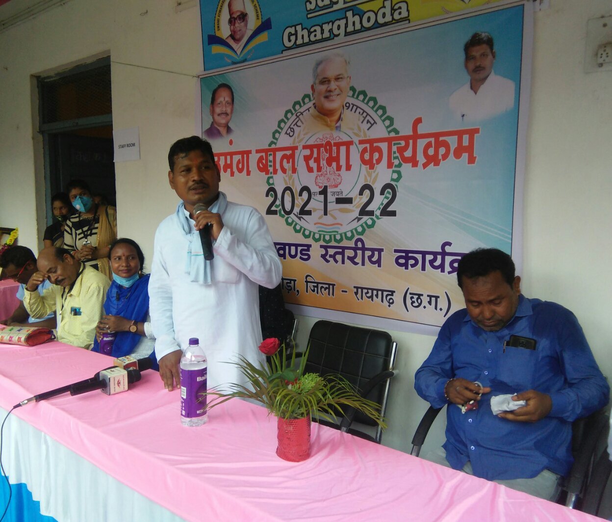 उमंग बालसभा कार्यक्रम घरघोड़ा में विधायक लालजीत सिंह ने अंग्रेजी में किया संबोधन
