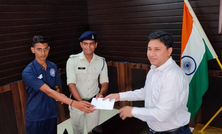 रायगढ़ एसपी अभिषेक मीना किये डायल 112 स्टाफ की हौसला अफजाई● लूटपाट के हथियारबंद आरोपी को निडरतापूर्वक पकड़ने वाले पुसौर राइनो सहित तीन स्टाफ को दिये 5,000 रूपये का नकद ईनाम