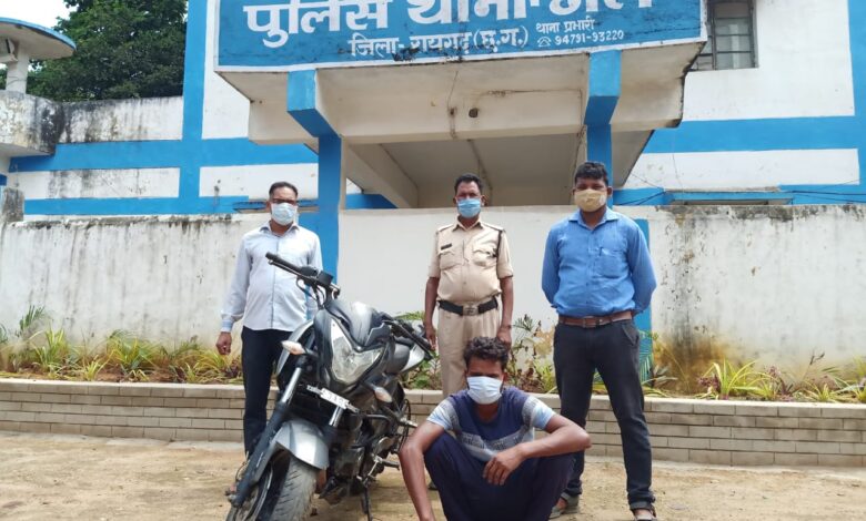 छाल के नवापारा SECL कालोनी से चोरी हुई बाइक के साथ आरोपी गिरफ्तार