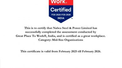नलवा स्टील एन्ड पावर लिमिटेड को लगातार दूसरी बार मिला ग्रेट प्लेस टू वर्क का प्रमाण पत्र